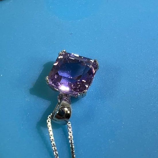 All natural, beautiful Amethyst gemstones have been prized as semi precious gemstones for thousands of years. Only the best Amethyst is chosen to be faceted into gemstones. Incredible deep purple and lilac colors, with excellent clarity. Includes an 18 inch S925 silver box style necklace.