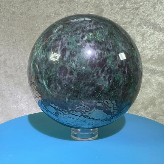 Enhance your crystal collection with this rare 64mm Atacamite and Pyrite Sphere from Peru. The stunning color combination of this high-quality sphere is sure to catch your eye. Add a touch of uniqueness to your space with this beautiful piece.