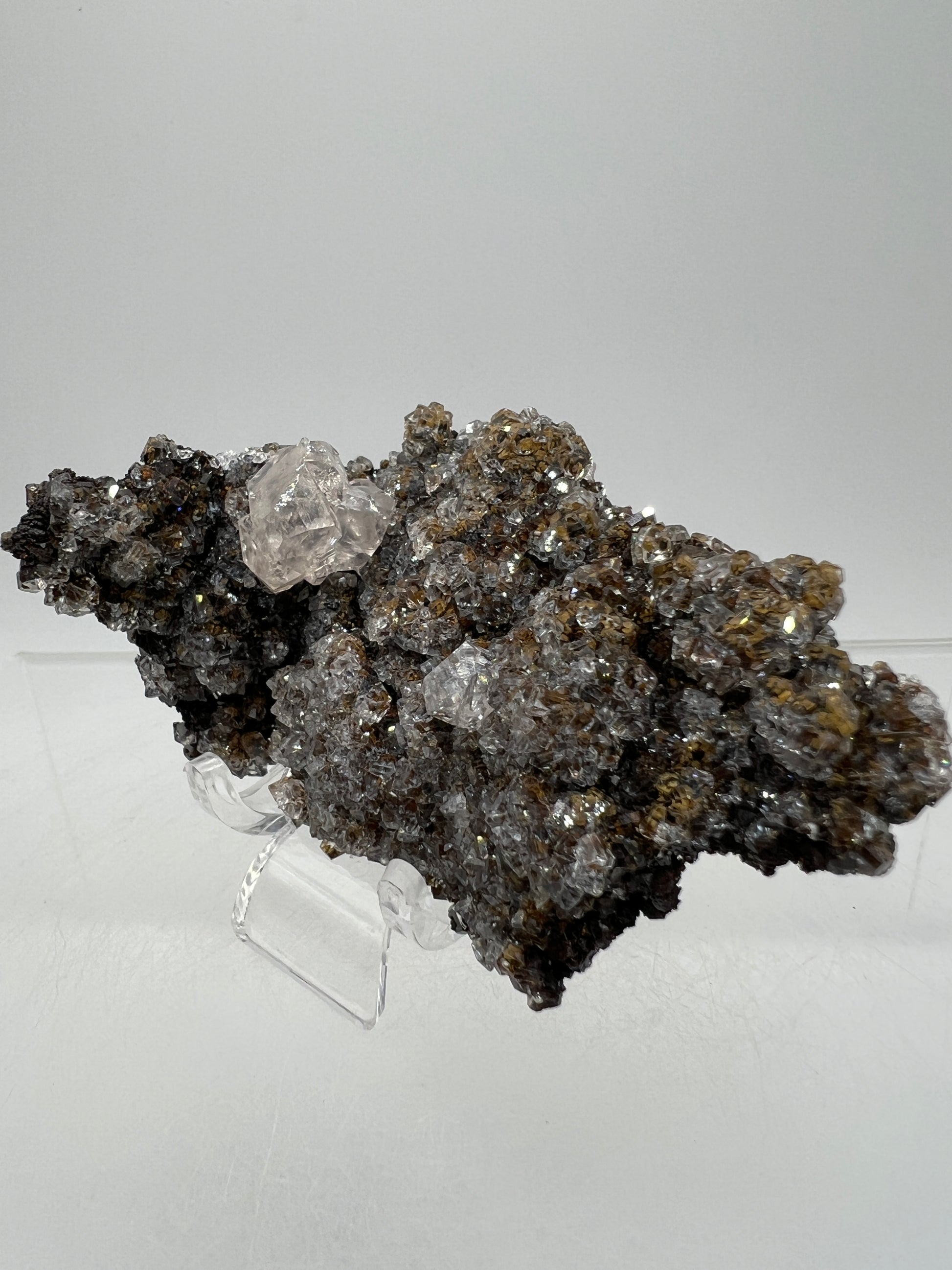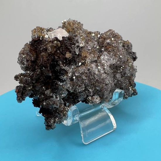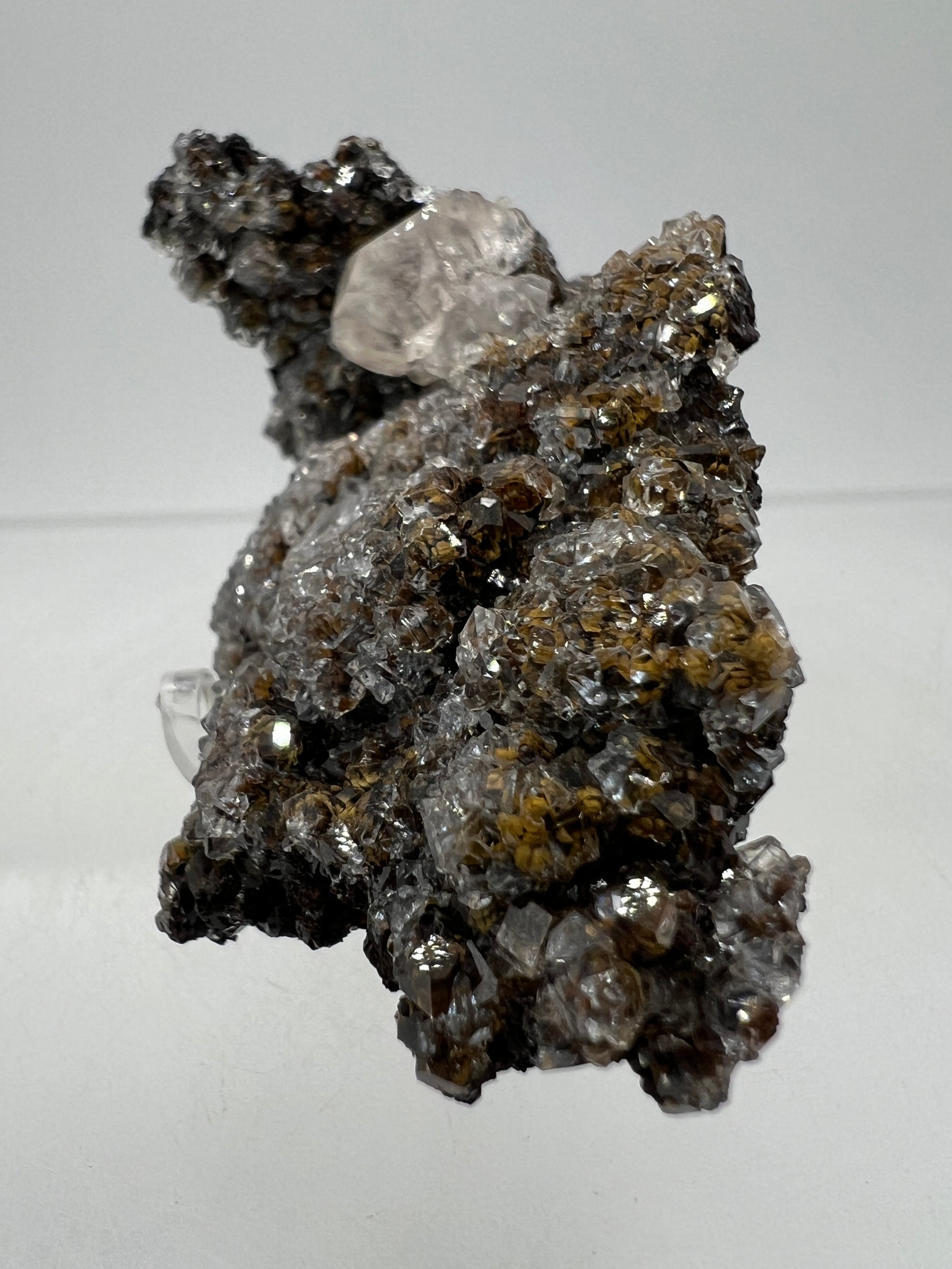 This Black Diamond Calcite specimen from the Potosi mine in Santa Eulalia, Chihuahua Mexico is a stunning addition to any crystal collection. Its flashy appearance and beautiful cluster on matrix make it a very cool display piece.