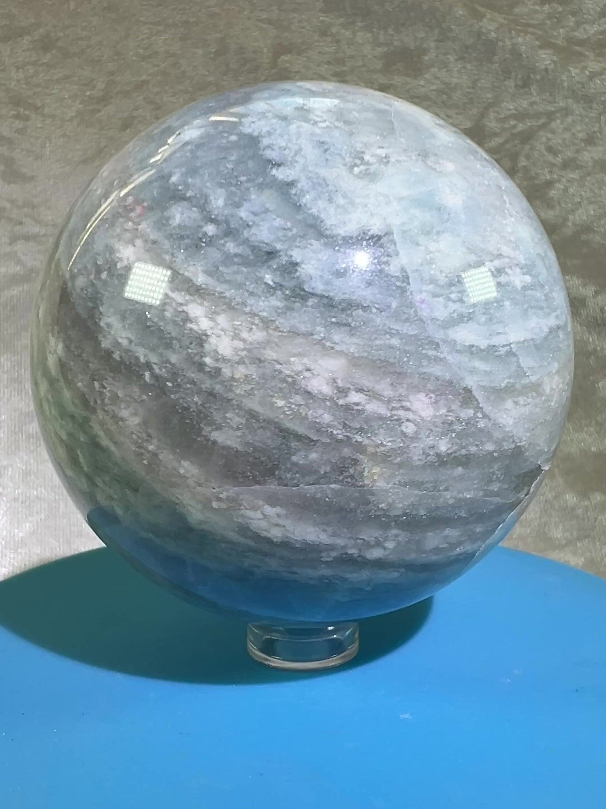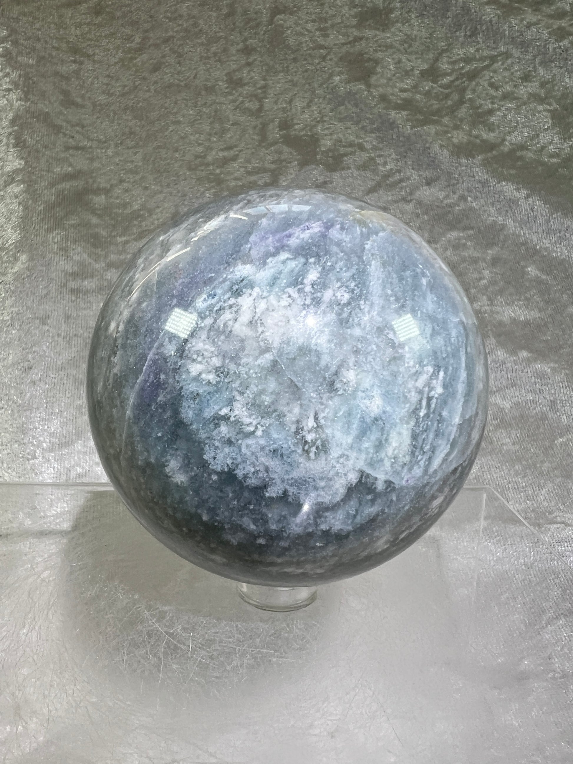 Calcite Blue Cloud Crystal Sphere. 72mm. Gorgeous Colors With Amazing Patterns.