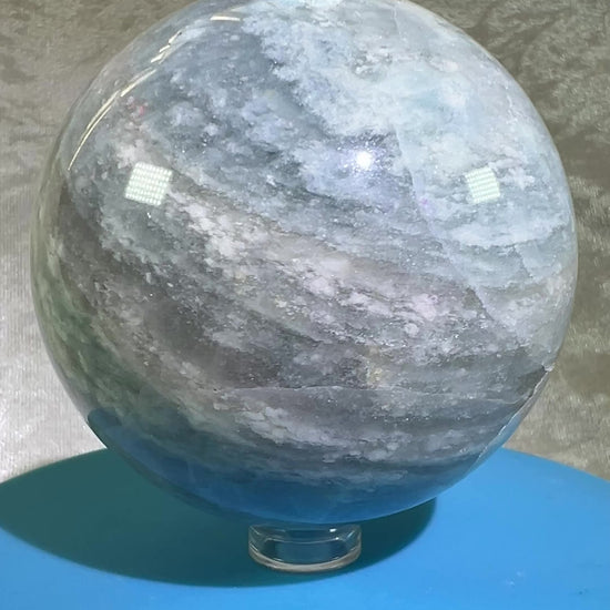 "Experience the rare and beautiful with our Calcite Blue Cloud Crystal Sphere. Marvel at the stunning patterns and gorgeous colors of this large sphere, featuring unique cloud formations. A must-have for any crystal collection!"