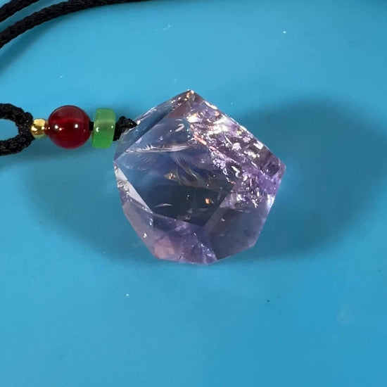 This exquisite Amethyst Pendant is truly one of a kind. With its polished, high quality design, it showcases big, stunning rainbows that are sure to catch anyone's eye. Add this unique piece of jewelry to your collection and bask in its captivating beauty. Includes a 24 inch adjustable necklace.