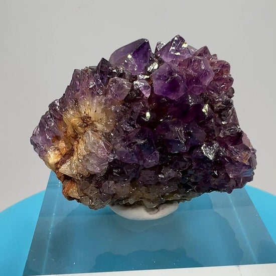 This vibrant purple Amethyst is from Kwaggafontein, South Africa. This is located near the famous Spirit Quartz deposit, and is a remarkable variety known for its deep often zoned purple coloration and exceptional clarity. The crystals typically form in plate or cluster formations, with hues ranging from light violet to rich royal purple. Don’t miss out on this beauty. Clear acrylic display base is included.
