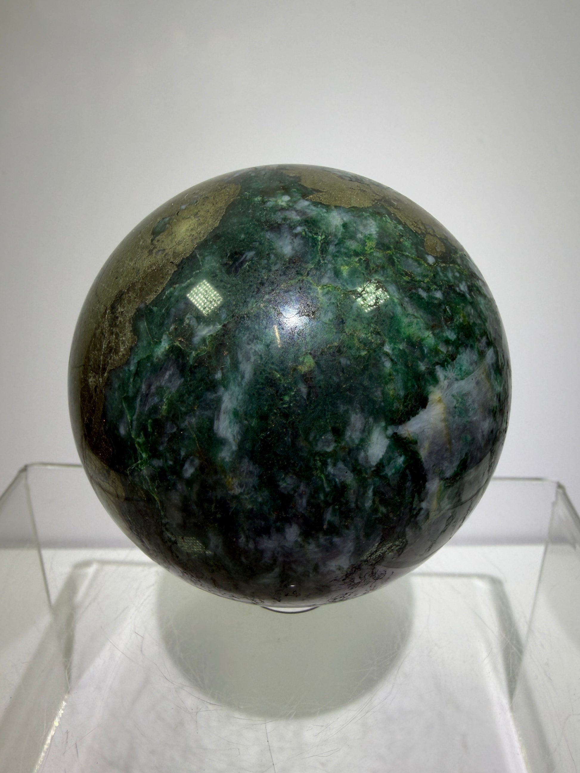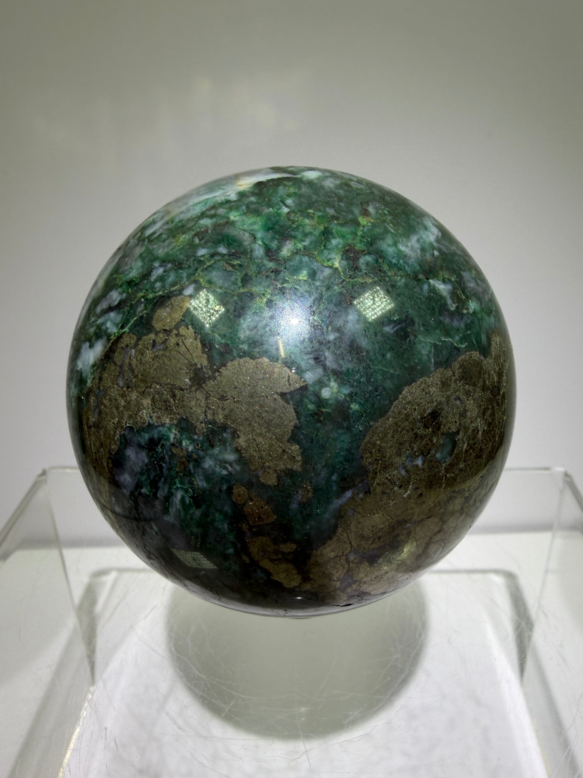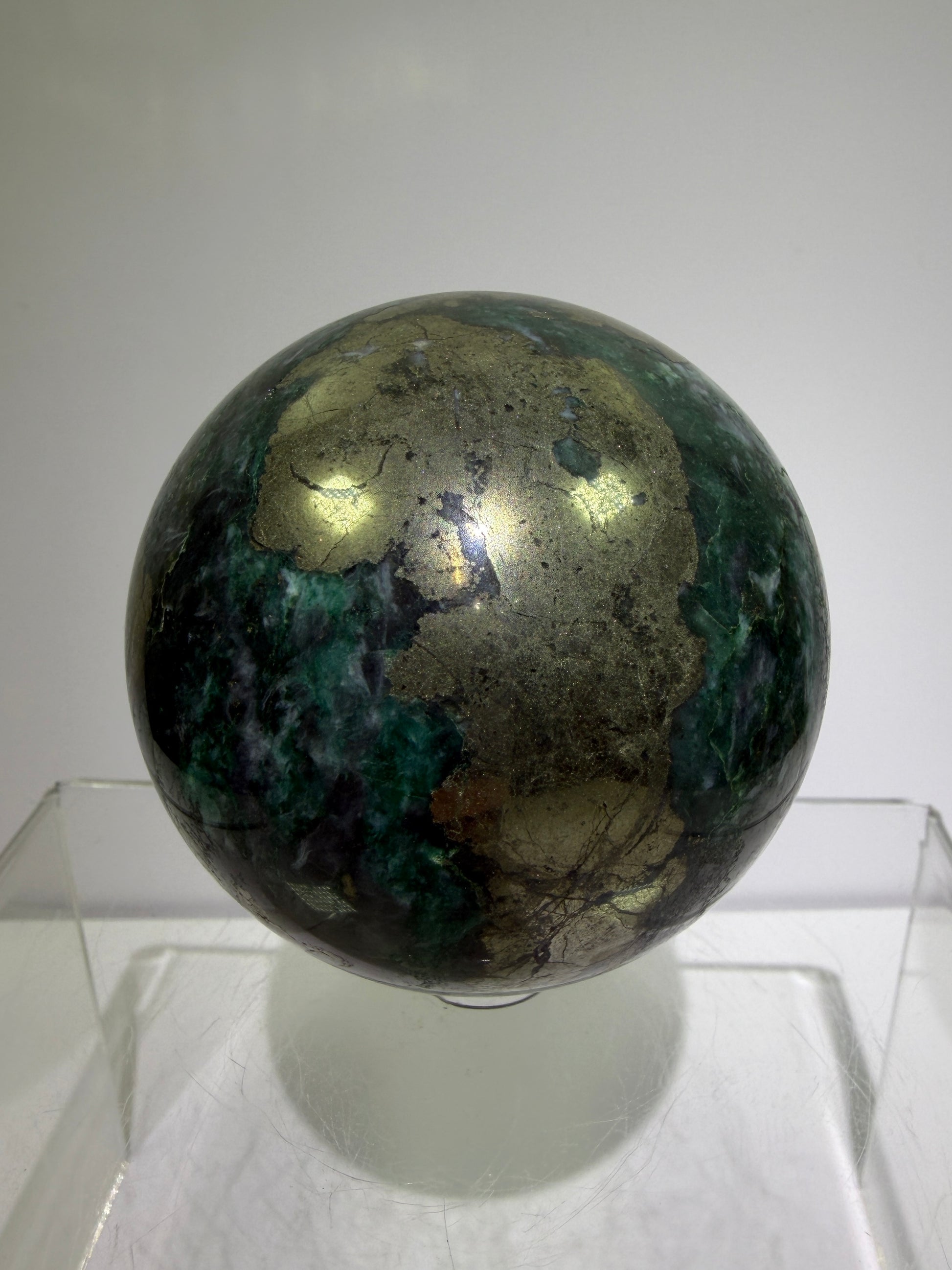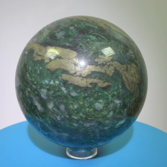 Atacamite And Pyrite Sphere. 64mm. High Quality Rare Sphere. Gorgeous Color Combination.
