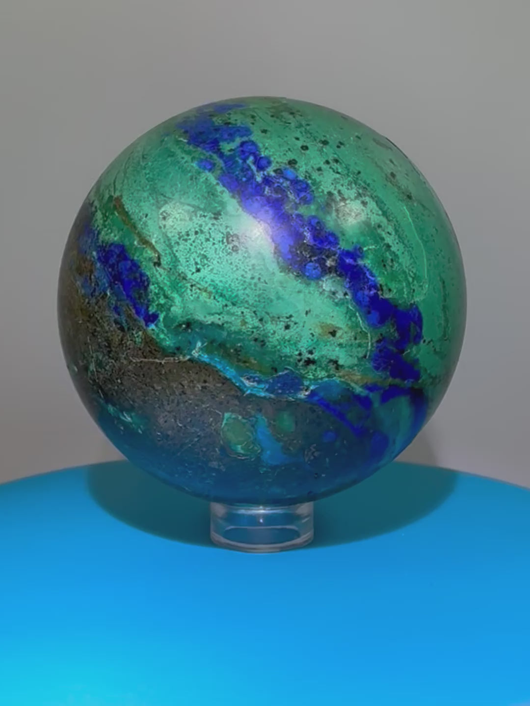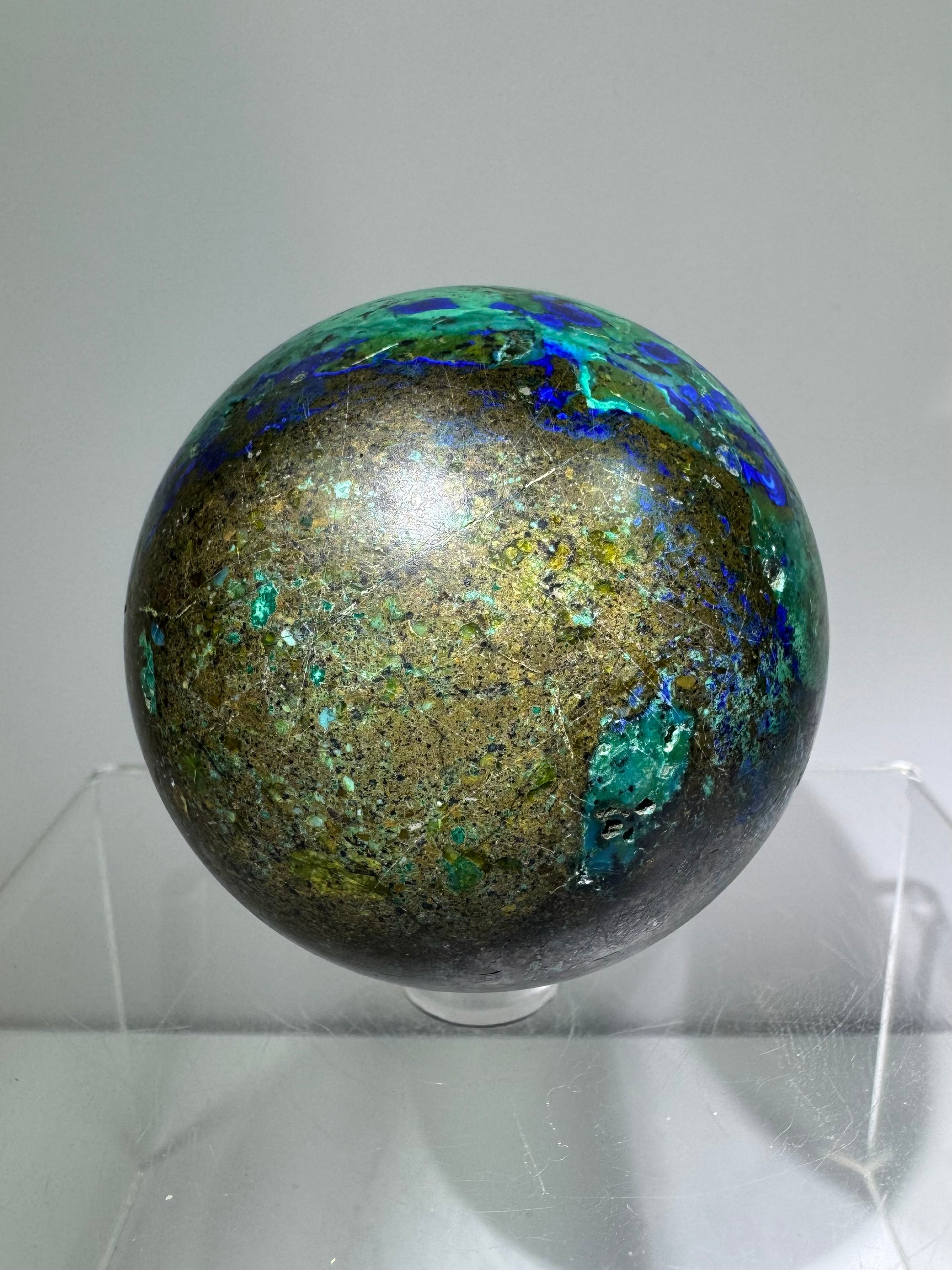 Azurite and Malachite Crystal Sphere. 61mm. Beautiful Deep Colors And Patterns. Stunning Rare Display Piece!