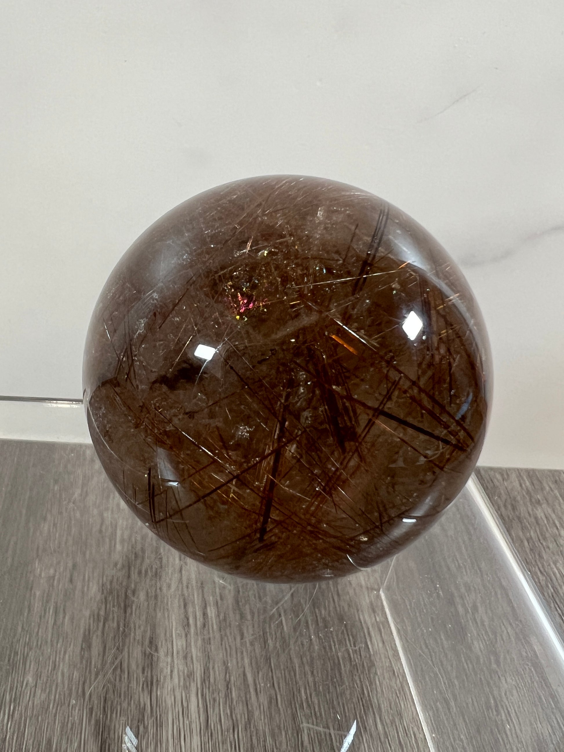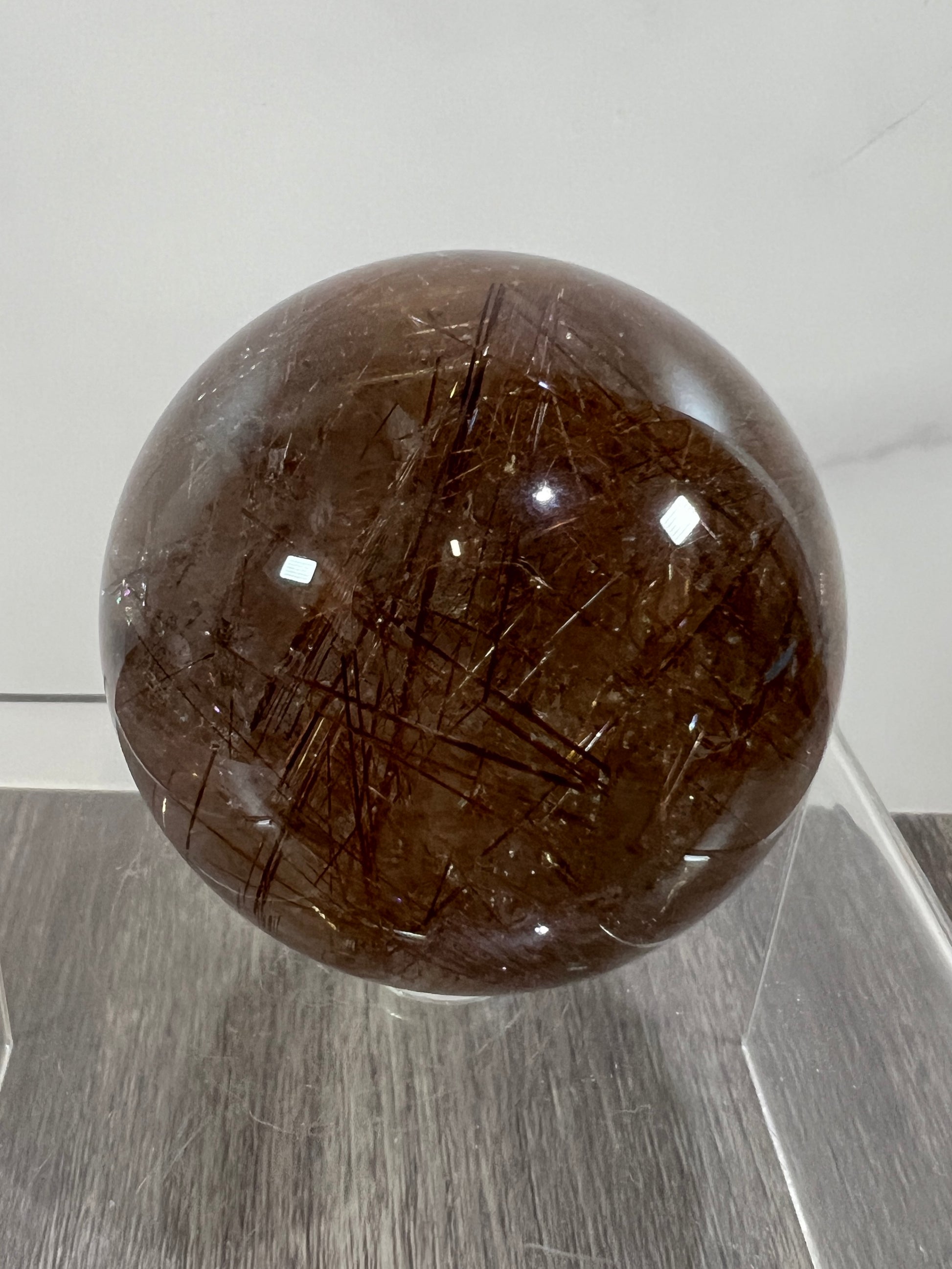 Copper Rutile Quartz Sphere. 53mm. Amazing Copper Rutilated Quartz. Stunning Rare Display Sphere