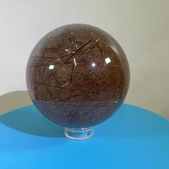 As a true display of beauty and rarity, this Copper Rutile Quartz Sphere boasts a rare copper rutile color. Its exquisite display of rainbows and very full rutile composition make it a must-have for any crystal collector. Don't miss out on this amazing find.