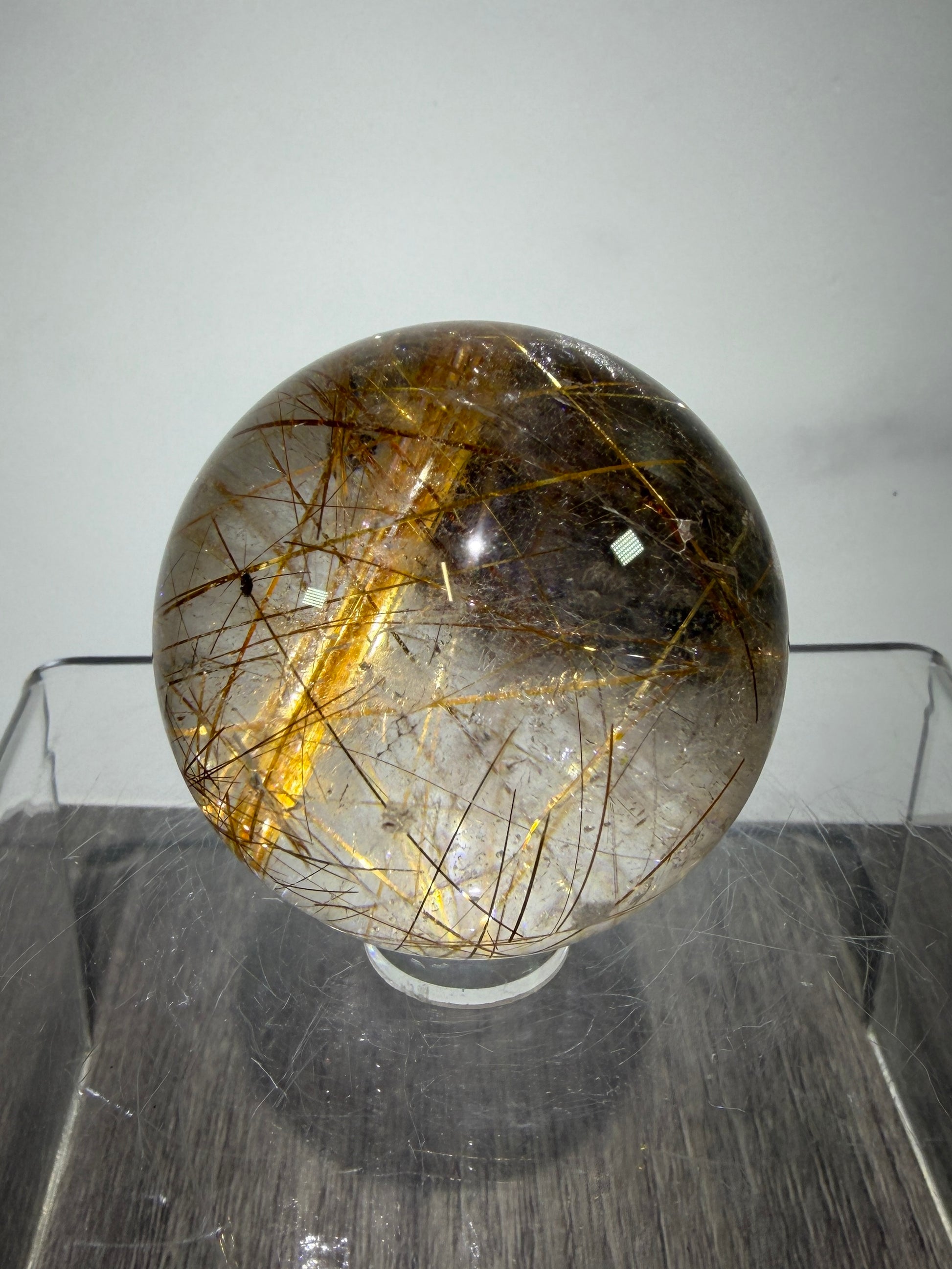 Copper Rutile Quartz Sphere. Stunning Hematite Slab And Rutile Inclusions. Amazing Rare Display Sphere