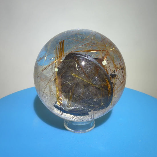 Discover the mesmerizing beauty of our Copper Rutile Quartz Sphere. This small delight features rutile inclusions, and a stunning rare hematite slab. Its rare color and high quality make it a must-have for any crystal enthusiast. Elevate your collection with this exceptional piece.