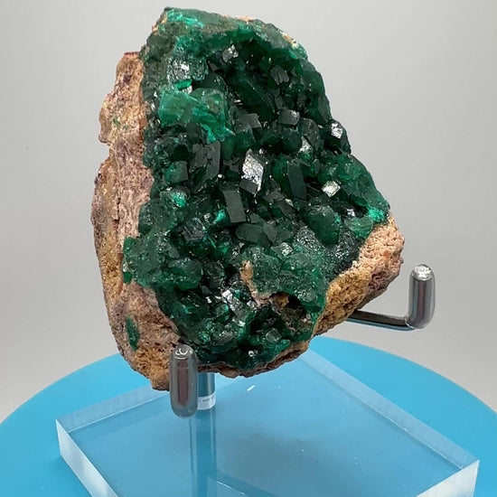 Dioptase Crystal Specimen. High Quality Flashy Mineral From The Congo. Gorgeous Colors And Cubes.