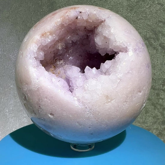 Experience the mesmerizing beauty of our Flower Agate Sphere! This unique 85mm sphere boasts a stunning combination of flower agate and amethyst, with a gorgeous purple flower druzy. One of a kind, rare, and offers an amazing display. Perfect for any crystal collector or as a stunning centerpiece.