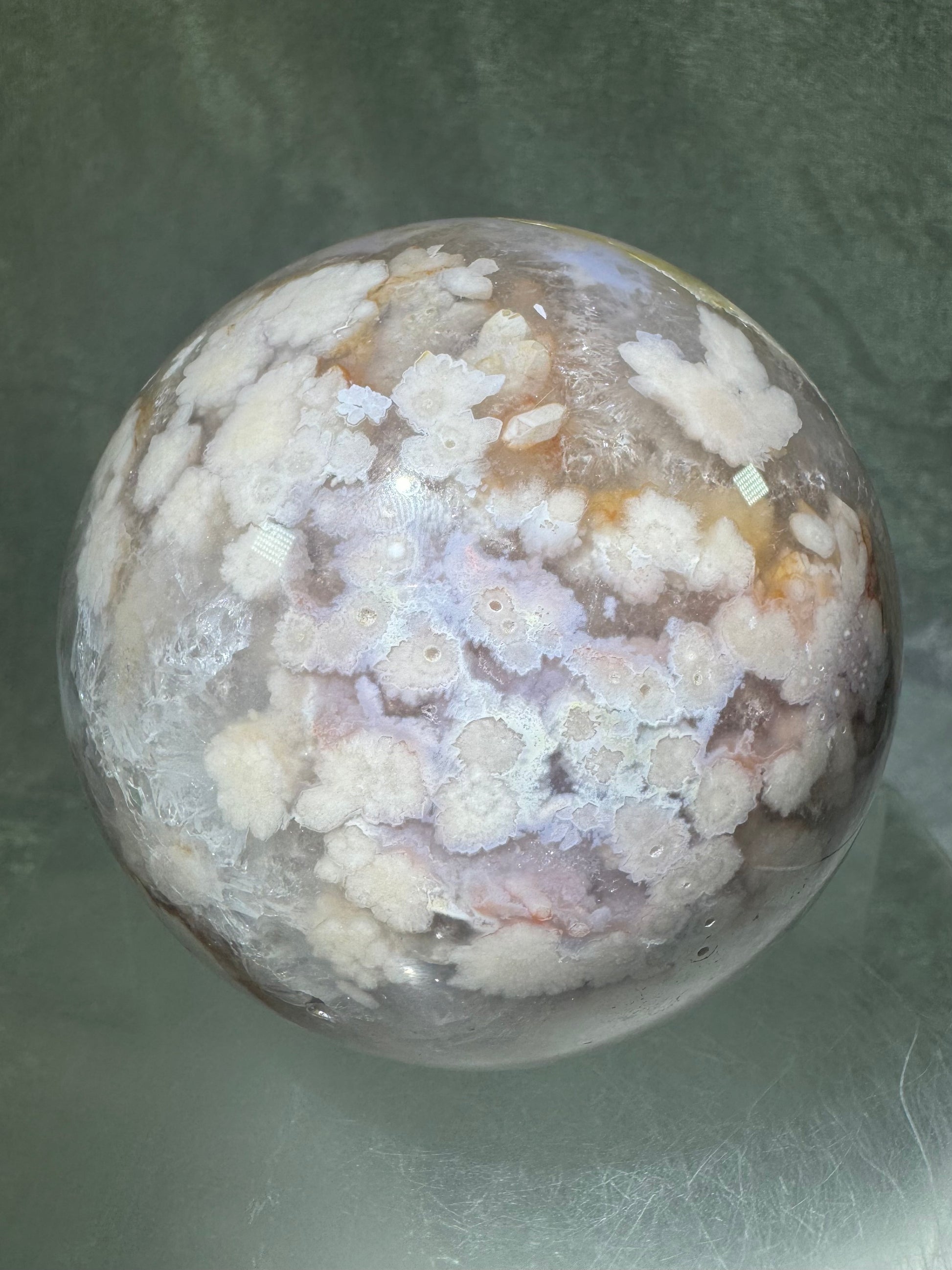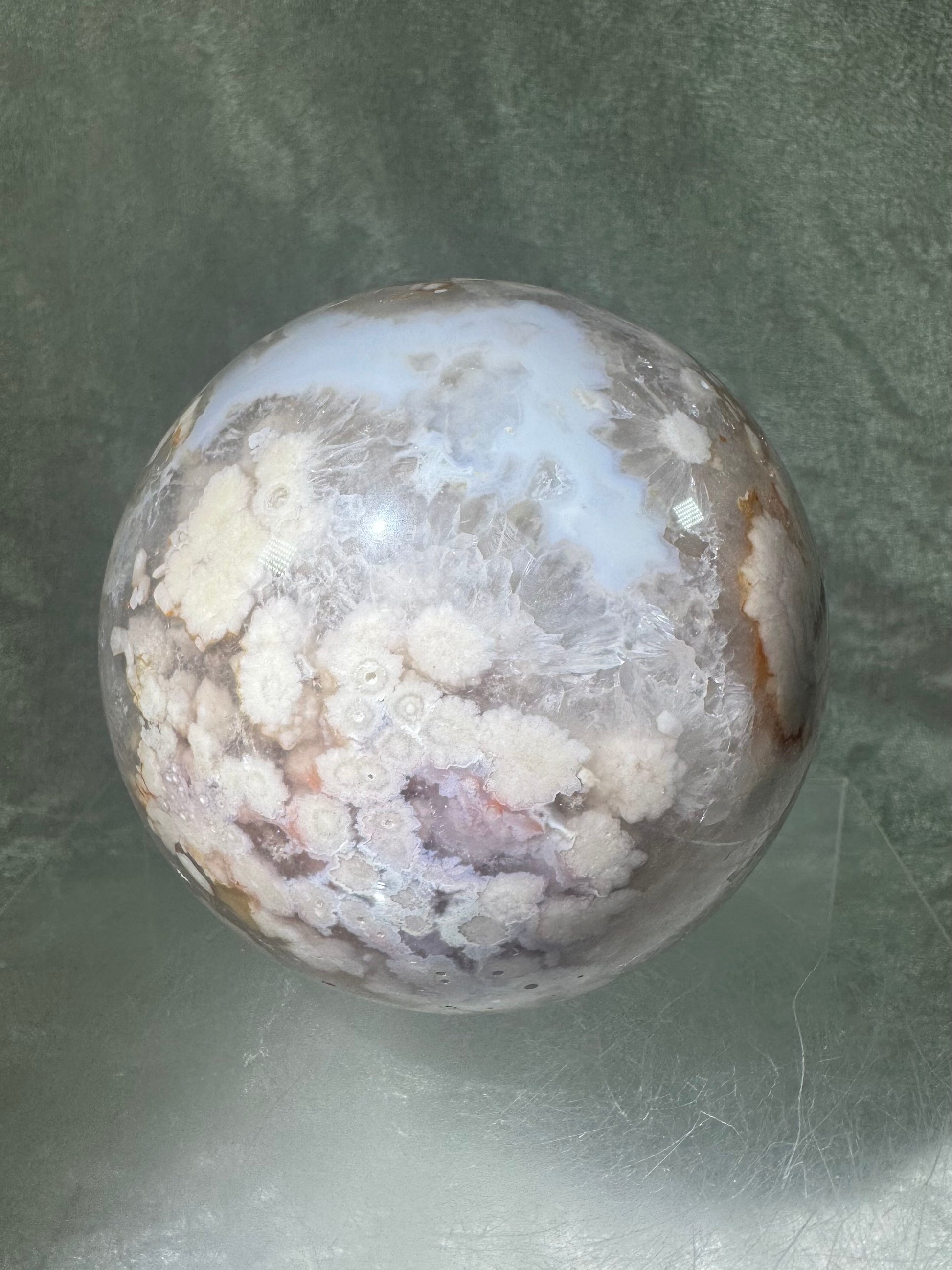 Flower Agate Sphere. 90mm. Beautiful Druzy On This Large Centerpiece. Amazing One Of A Kind Display Sphere.