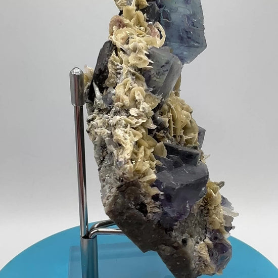 Experience the stunning beauty and unique energy of this stunning Fluorite Specimen. Sourced from the world-renowned Yaogangxian mine, this high-quality mineral combination boasts rare fluorite cubes, muscovite, and sphalerite. Enhance your collection with this beautiful mixed specimen. Very nice specimen display stand is included.
