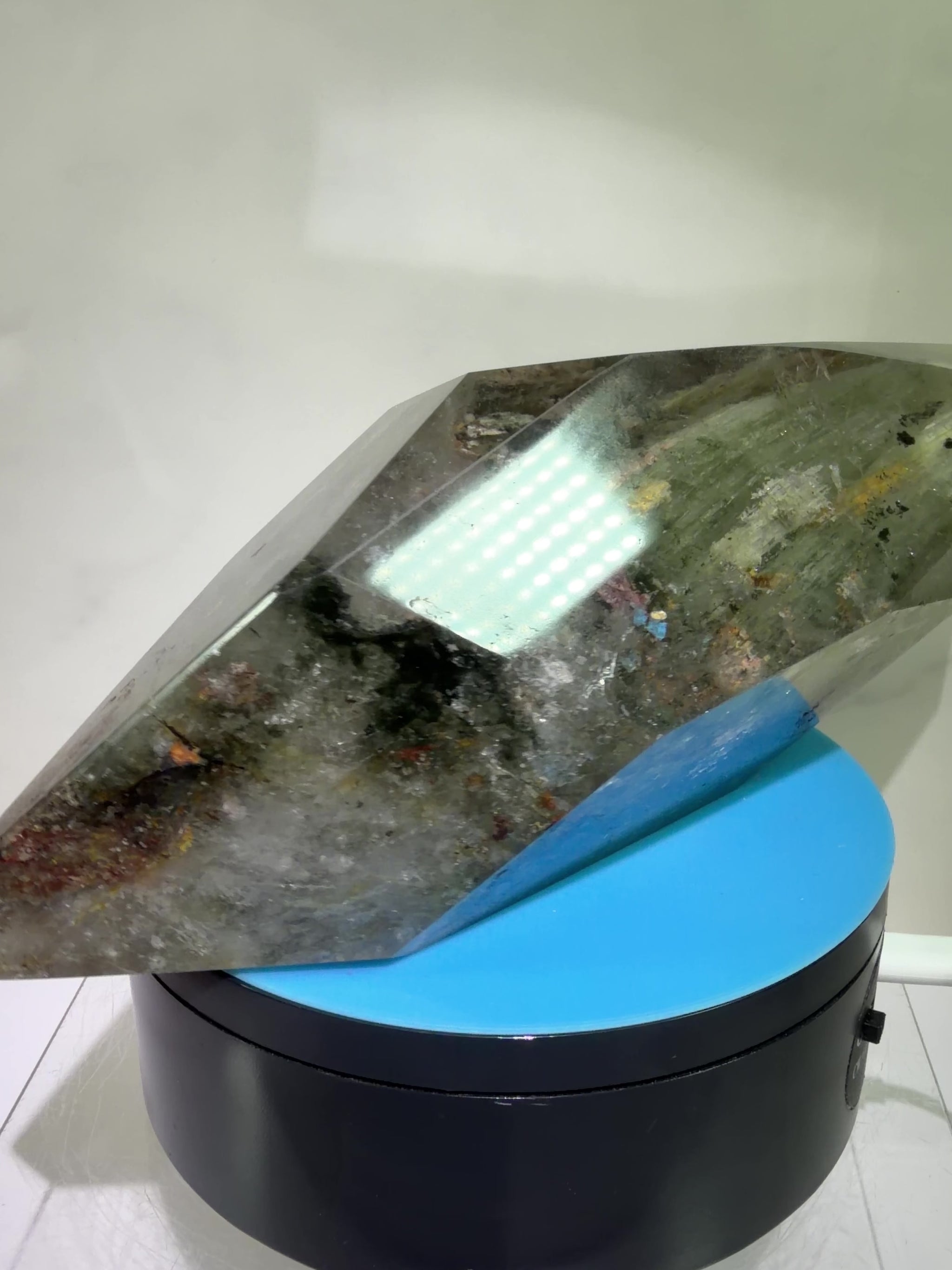 Immerse yourself in the natural beauty of this extra large Garden Quartz freeform crystal. Highly polished for a clear and vibrant appearance, this crystal is of the highest quality. With stunning lodolite patterns, it captures the four seasons landscape in its full and colorful form. A must-have for any crystal enthusiast.