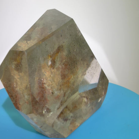 Experience the beauty of nature in the palm of your hand with our large Garden Quartz Polished Freeform crystal. This stunning lodolite piece showcases a unique pastel landscape with shades of pink, orange, tan, and yellow. With its nice clarity, it's the perfect addition to any crystal collection.