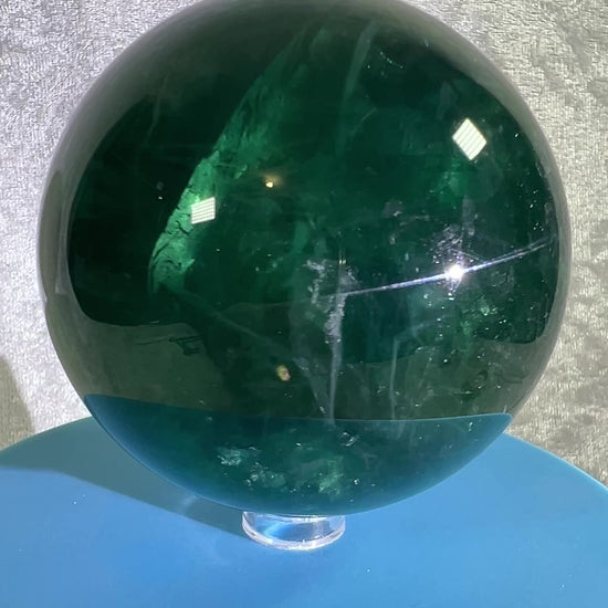 Add a touch of magic to your collection with our stunning green fluorite sphere. The rare emerald green color make this piece truly unique. Bring positive energy and balance to your space with this gorgeous fluorite sphere. Comes with the white light stand, HDMI block not included.