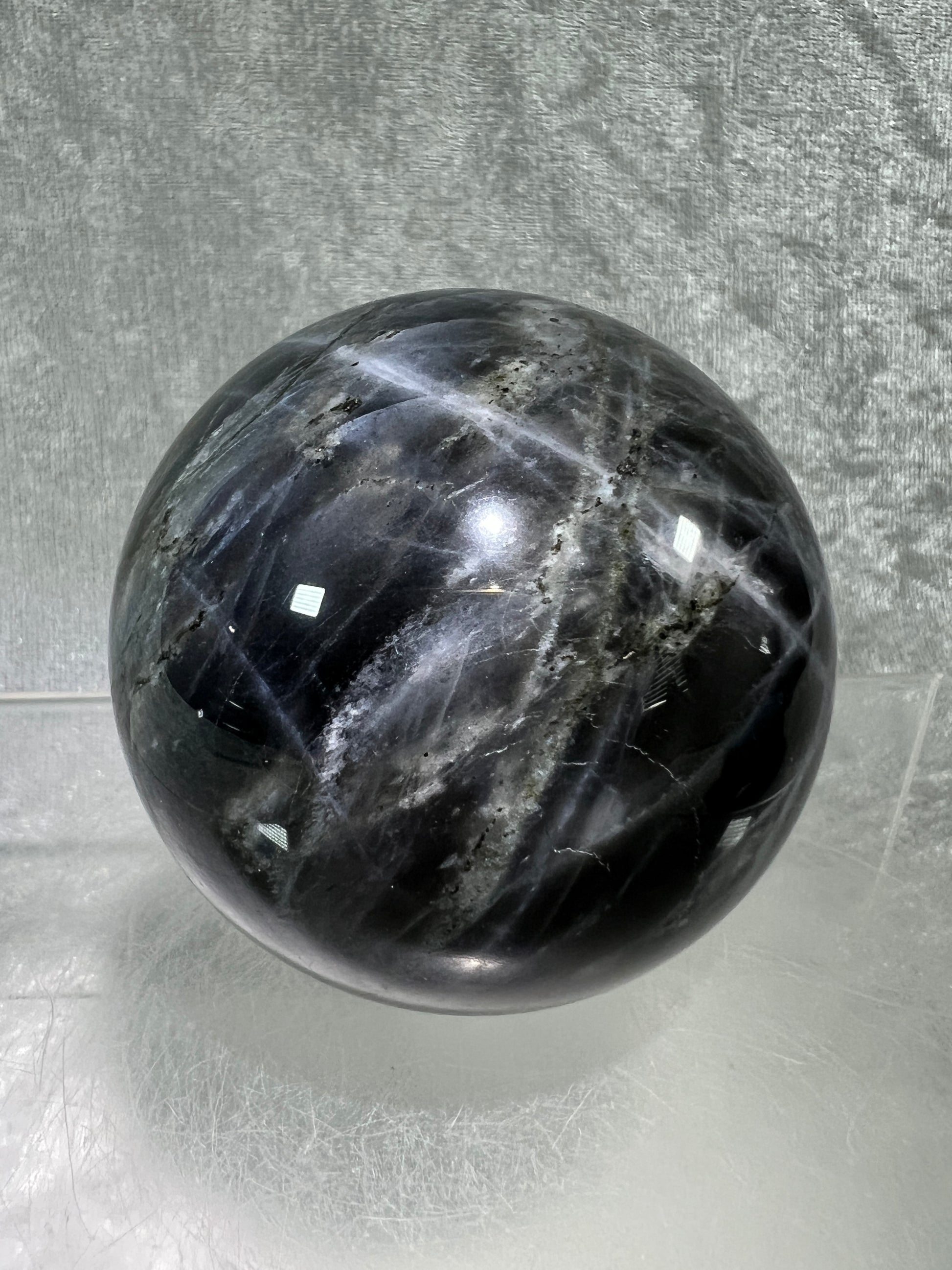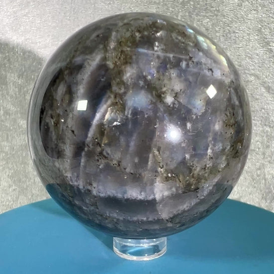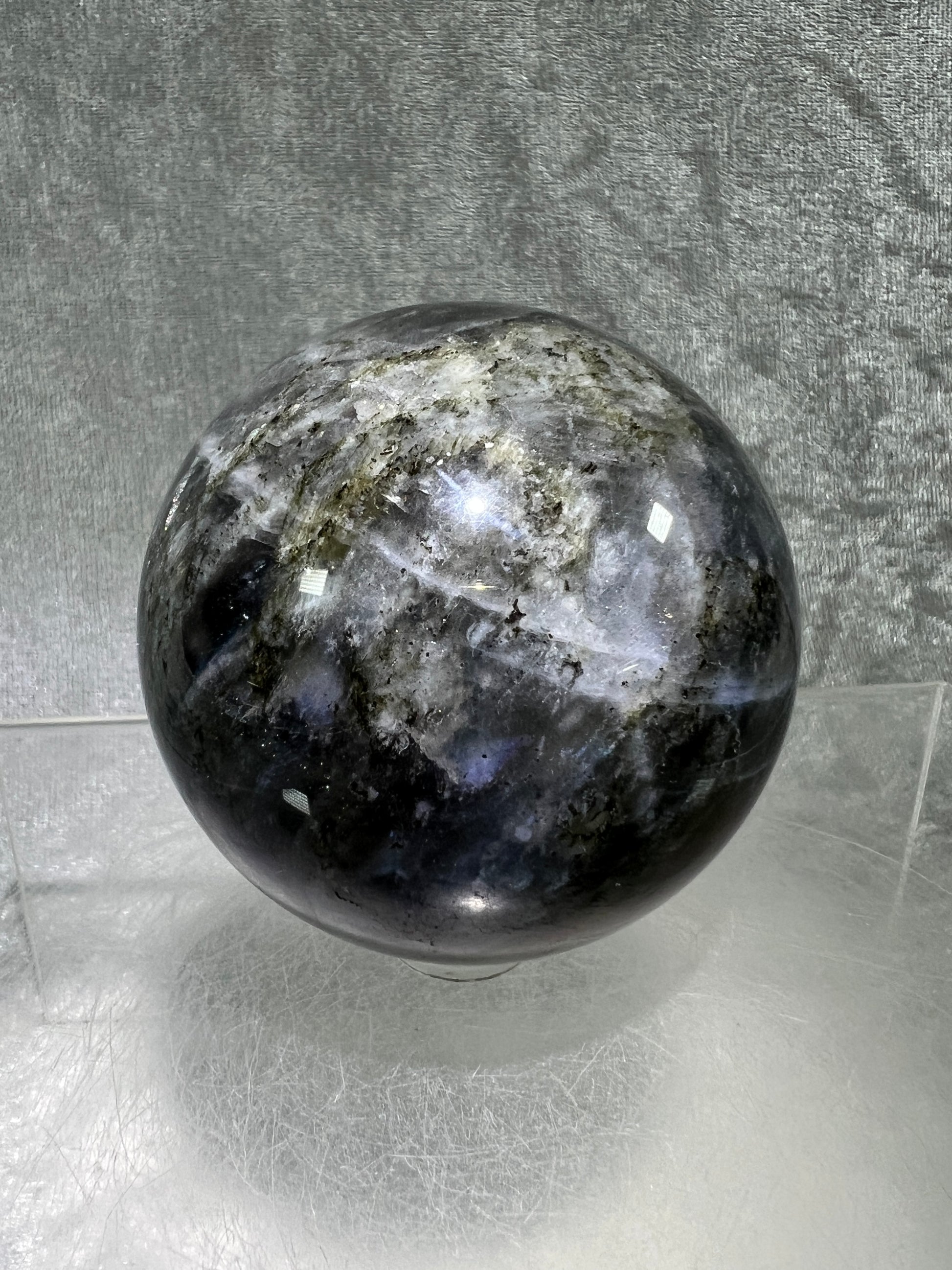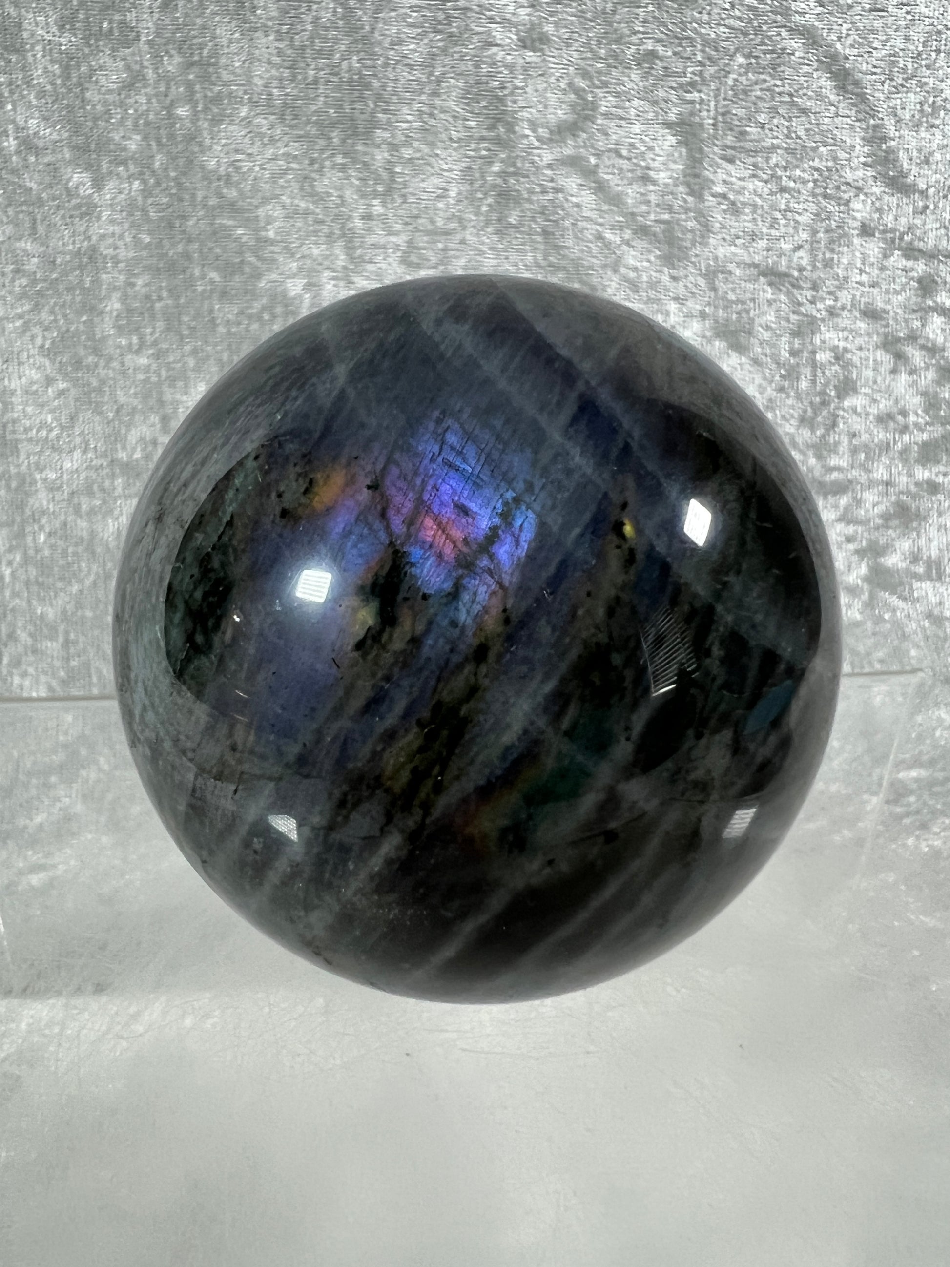Labradorite Crystal Sphere. 62mm. Gorgeous Purple Rainbow Flash. Rare Color Display Sphere.
