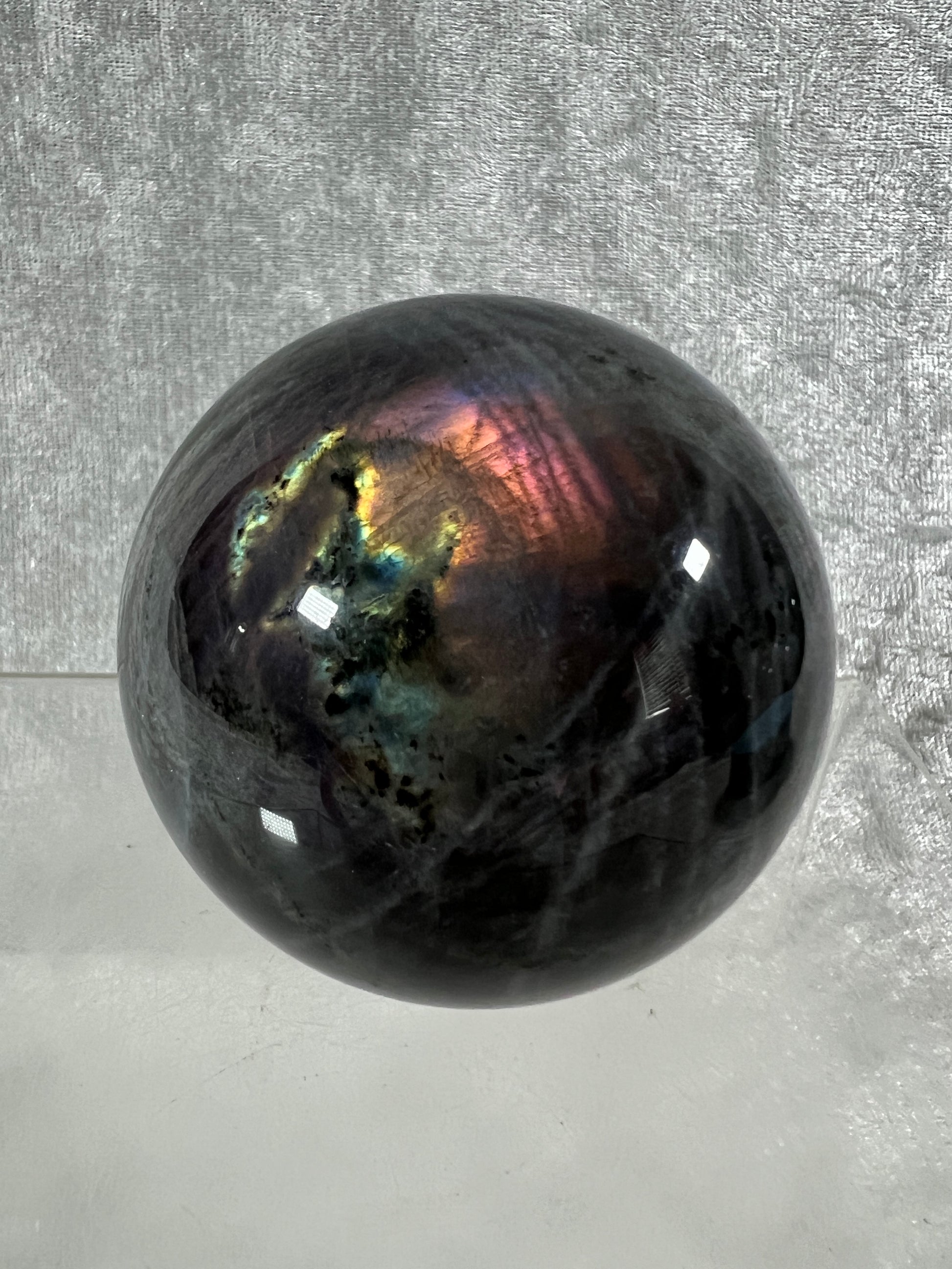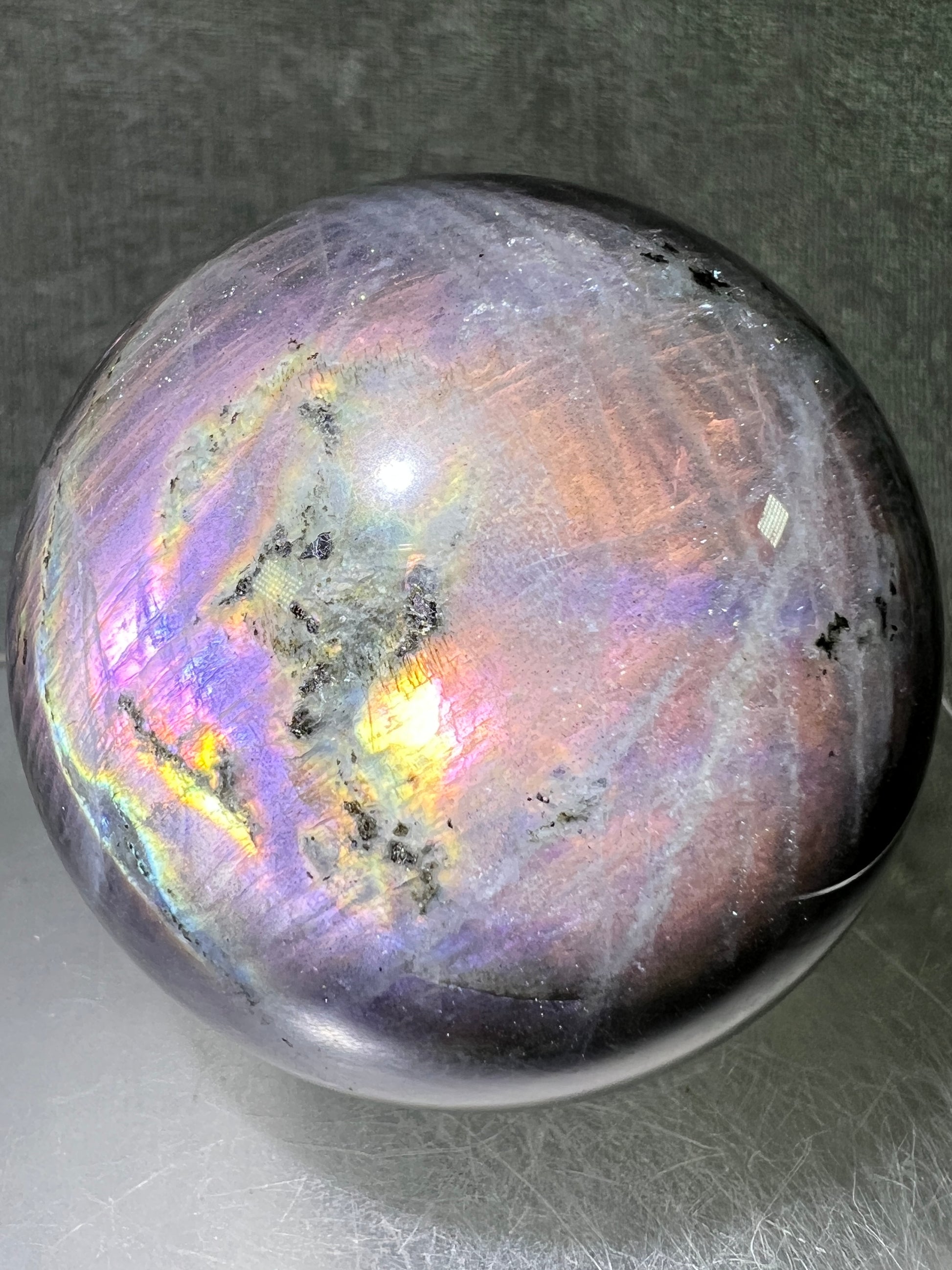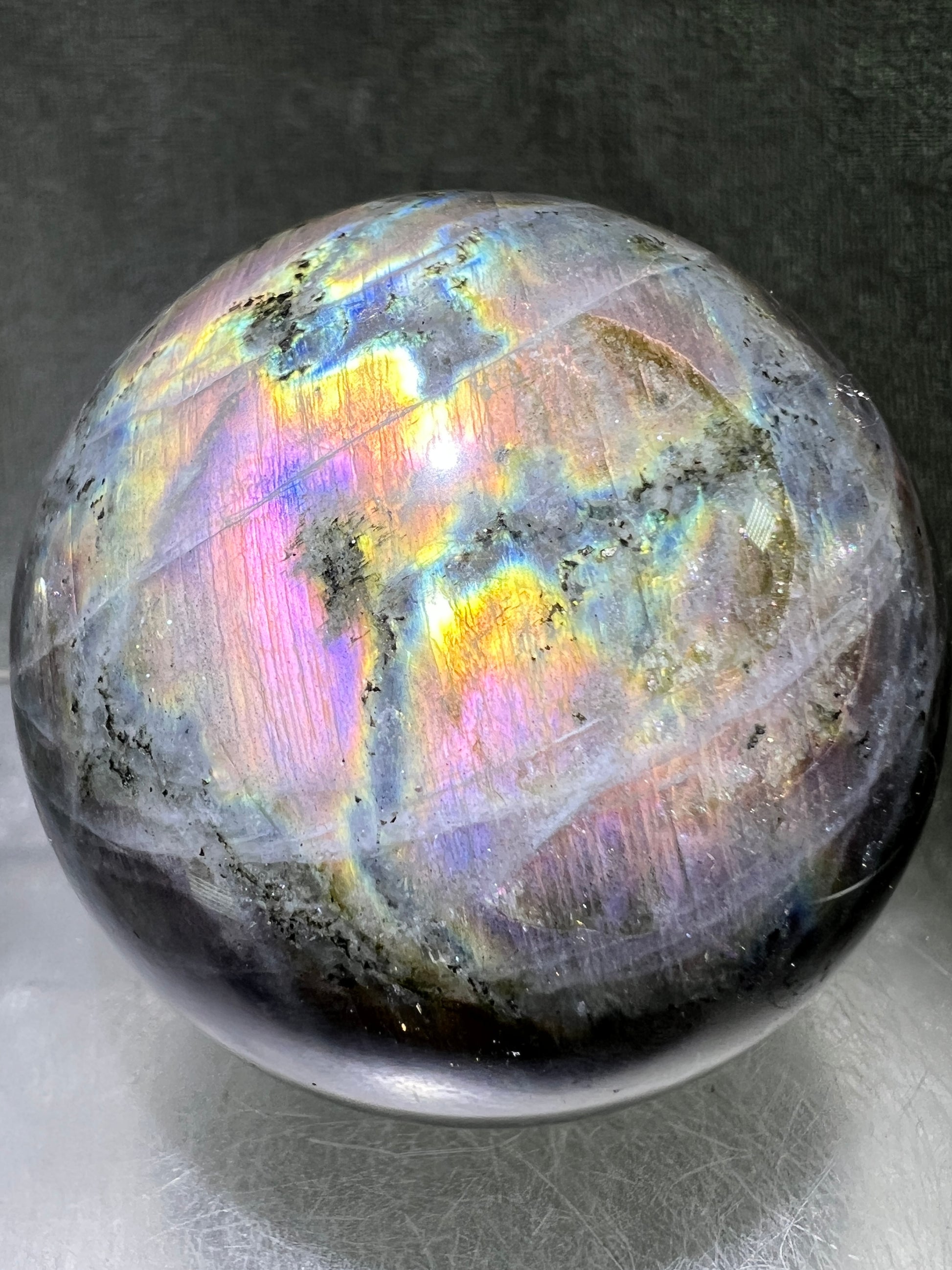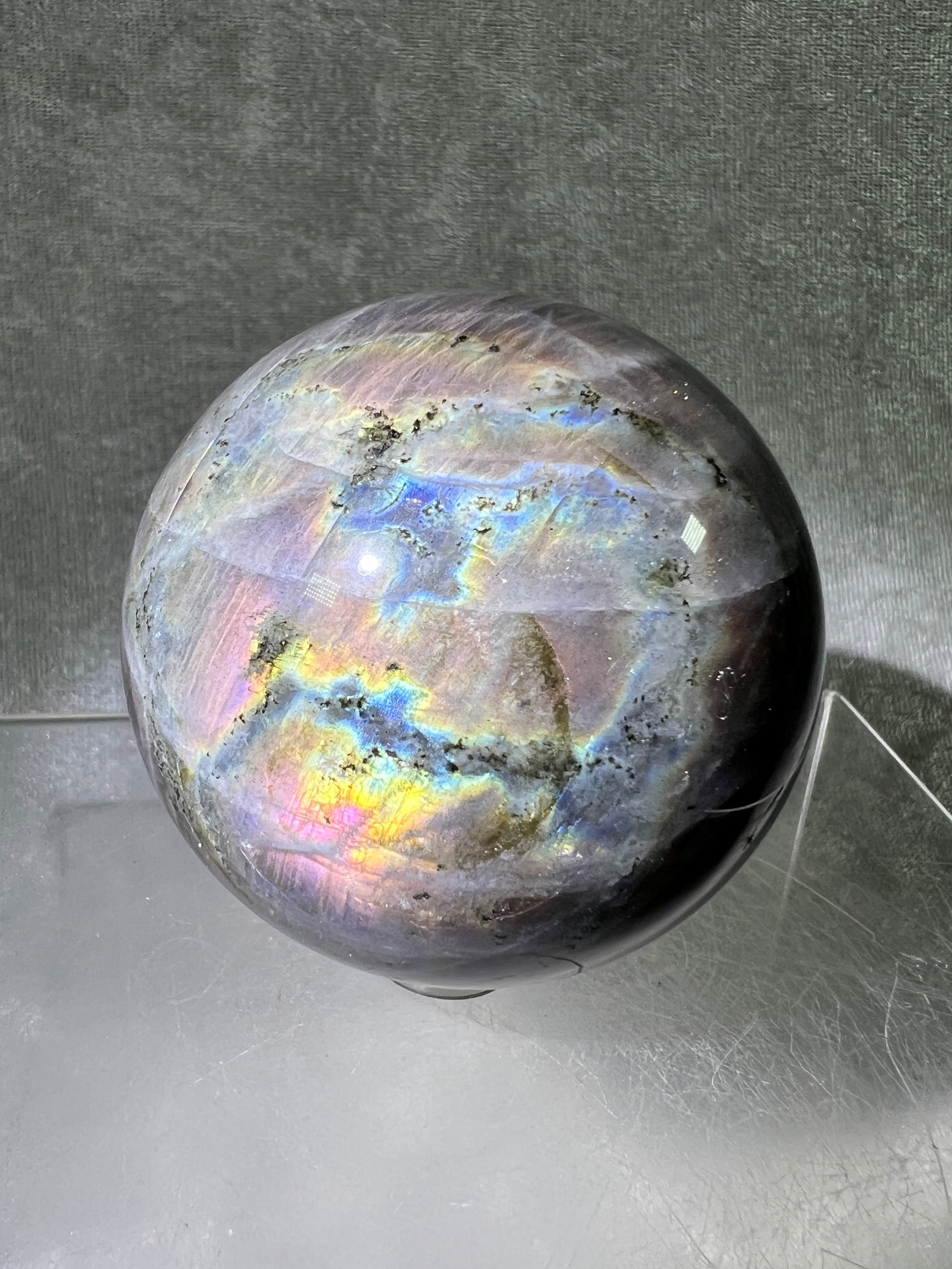 Labradorite Crystal Sphere. 64mm. Very Rare Pink And Purple Rainbow Flash. Gorgeous Display Sphere.