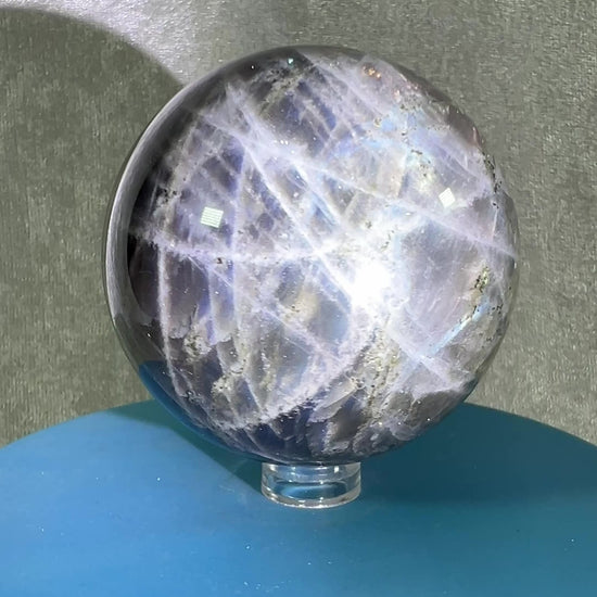 Enjoy a rare treat with our Labradorite Crystal Sphere. This 64mm sphere features a stunning rainbow flash in shades of purple, pink, yellow, orange, and blue. Experience the high quality and amazing effects of this unique crystal sphere.