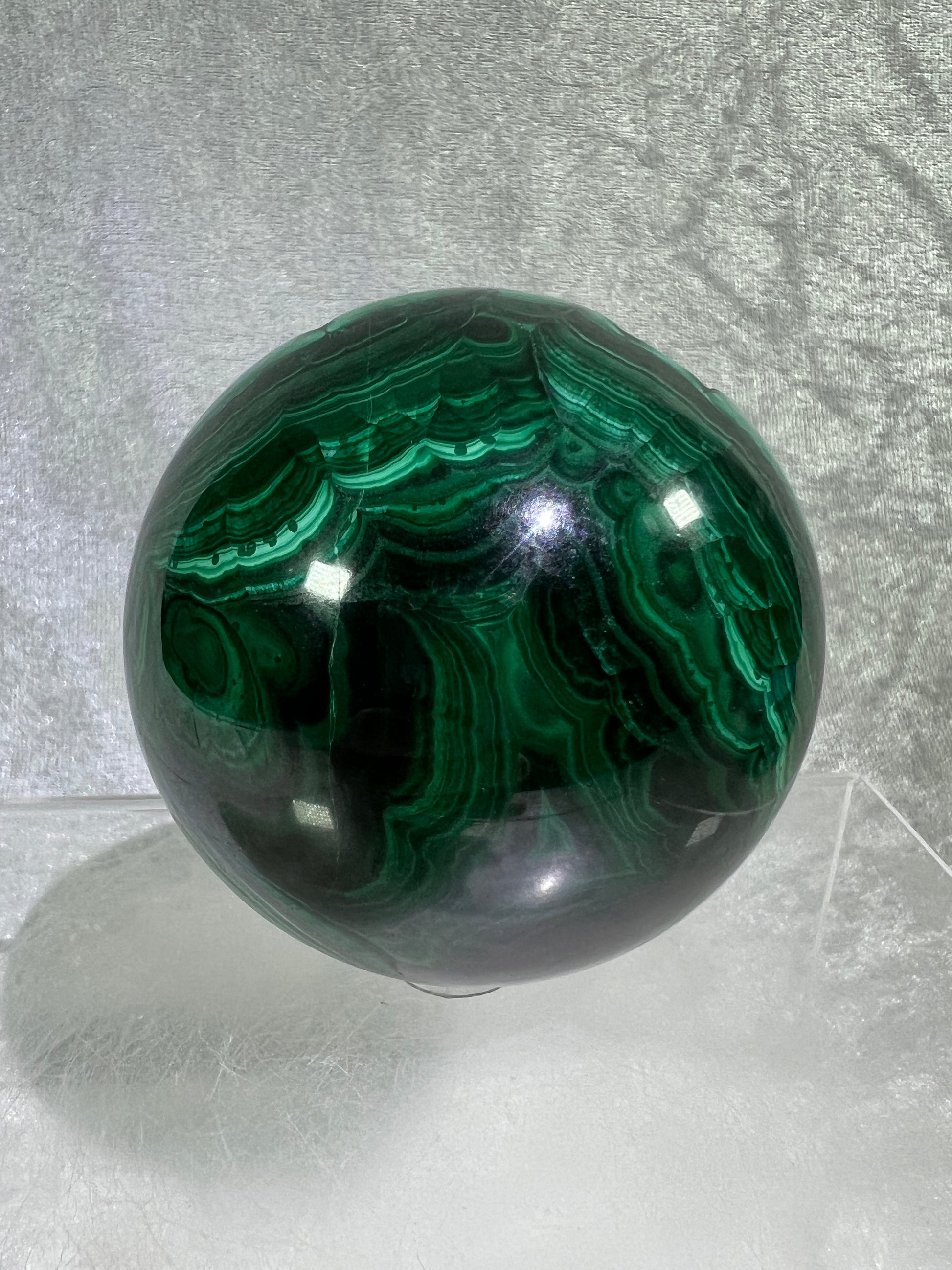Malachite Crystal Sphere. 72mm. Gorgeous Large Druzy Malachite. Very High Quality Rare Display Sphere.