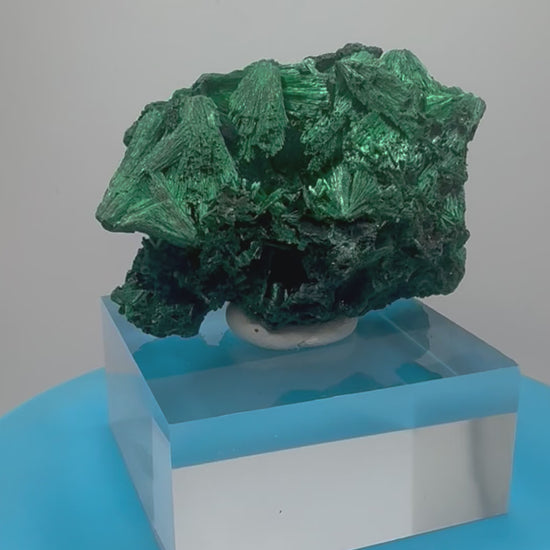 This silky malachite is a beautiful specimen from Kasompe, Congo. This region is world famous for producing the finest collector specimens. Add a touch of elegance and beauty to your home or office with this unique specimen. Clear acrylic display base is included.