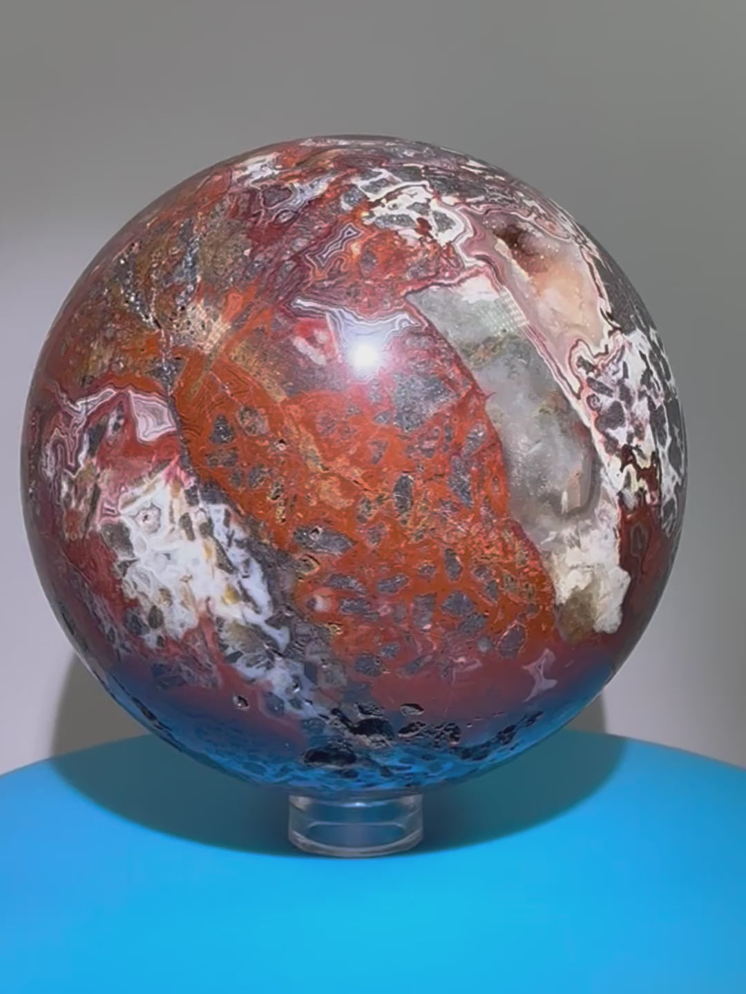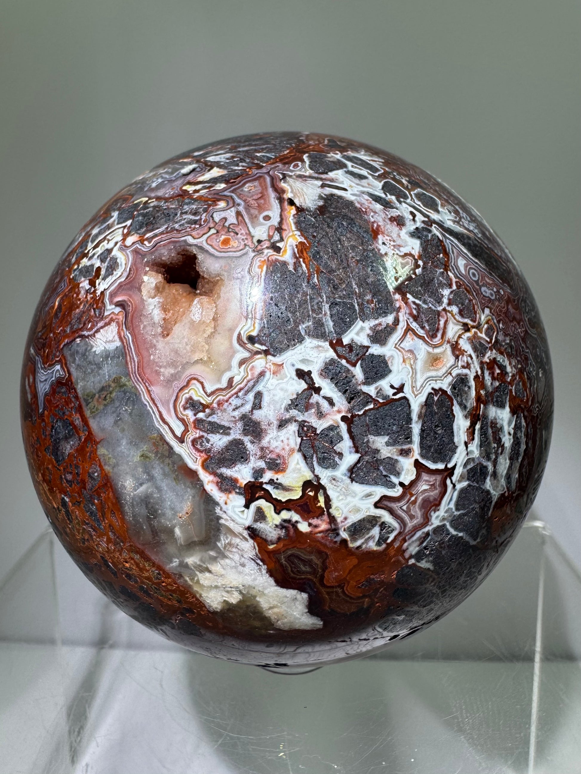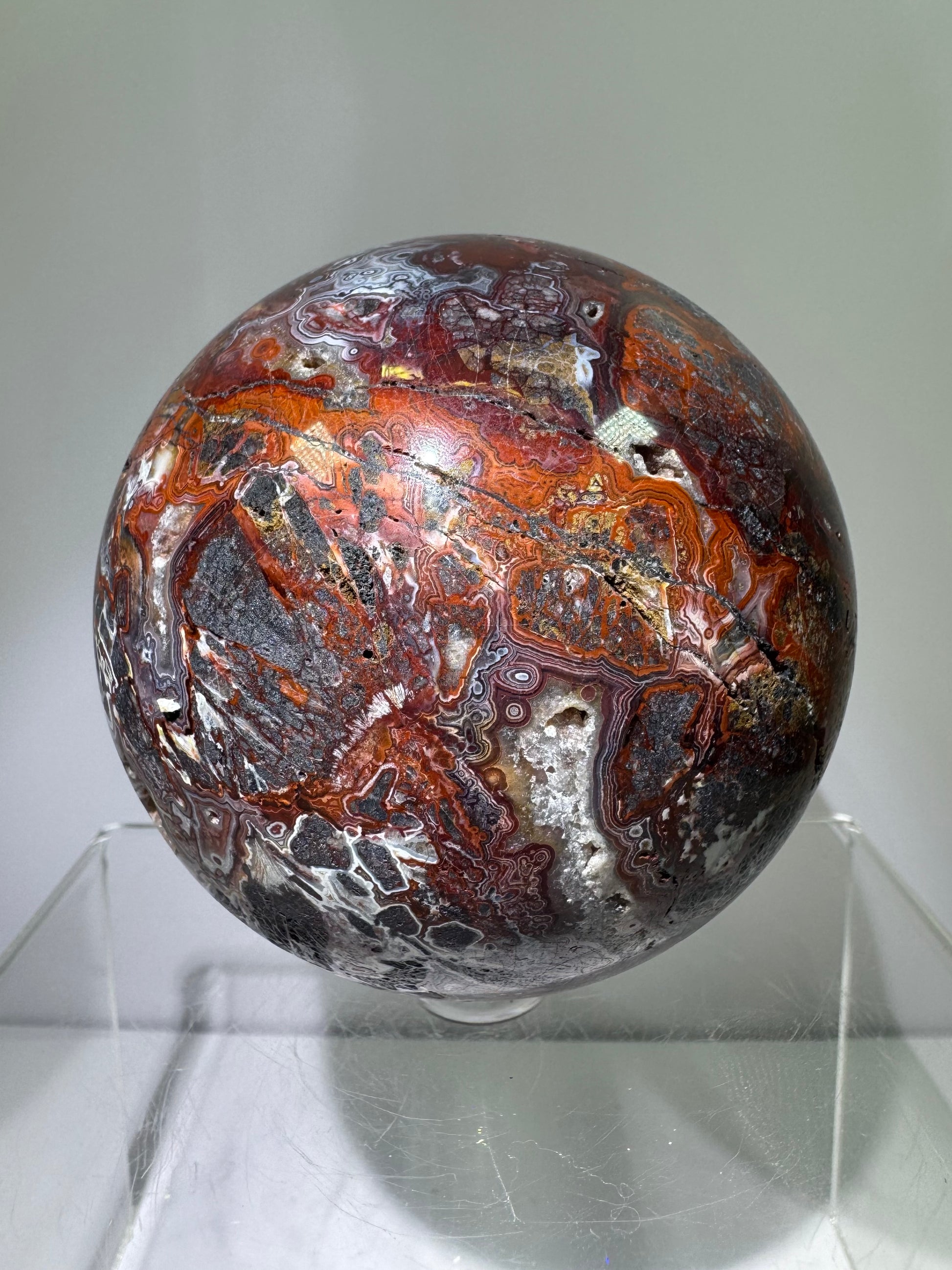 Mexican Crazy Lace Agate Sphere. 78mm. Deep Rich Colors With Stunning Patterns. Large Display Sphere.