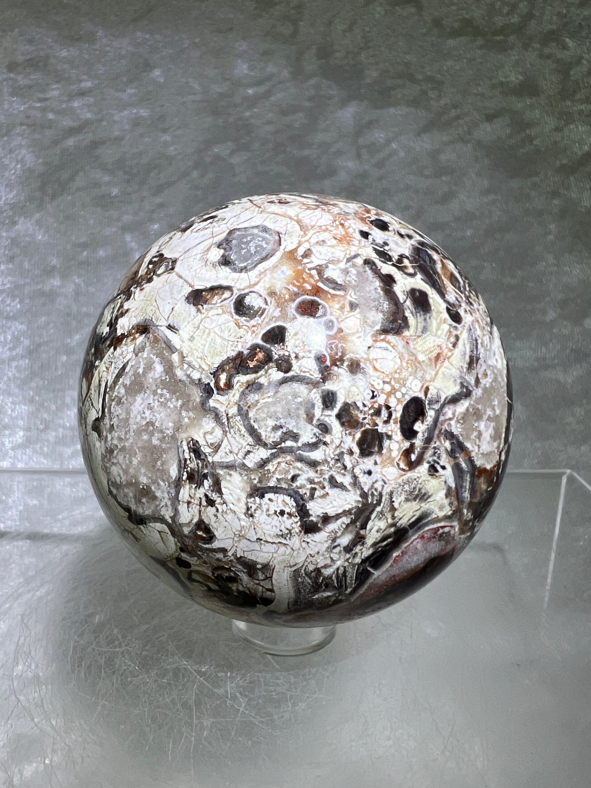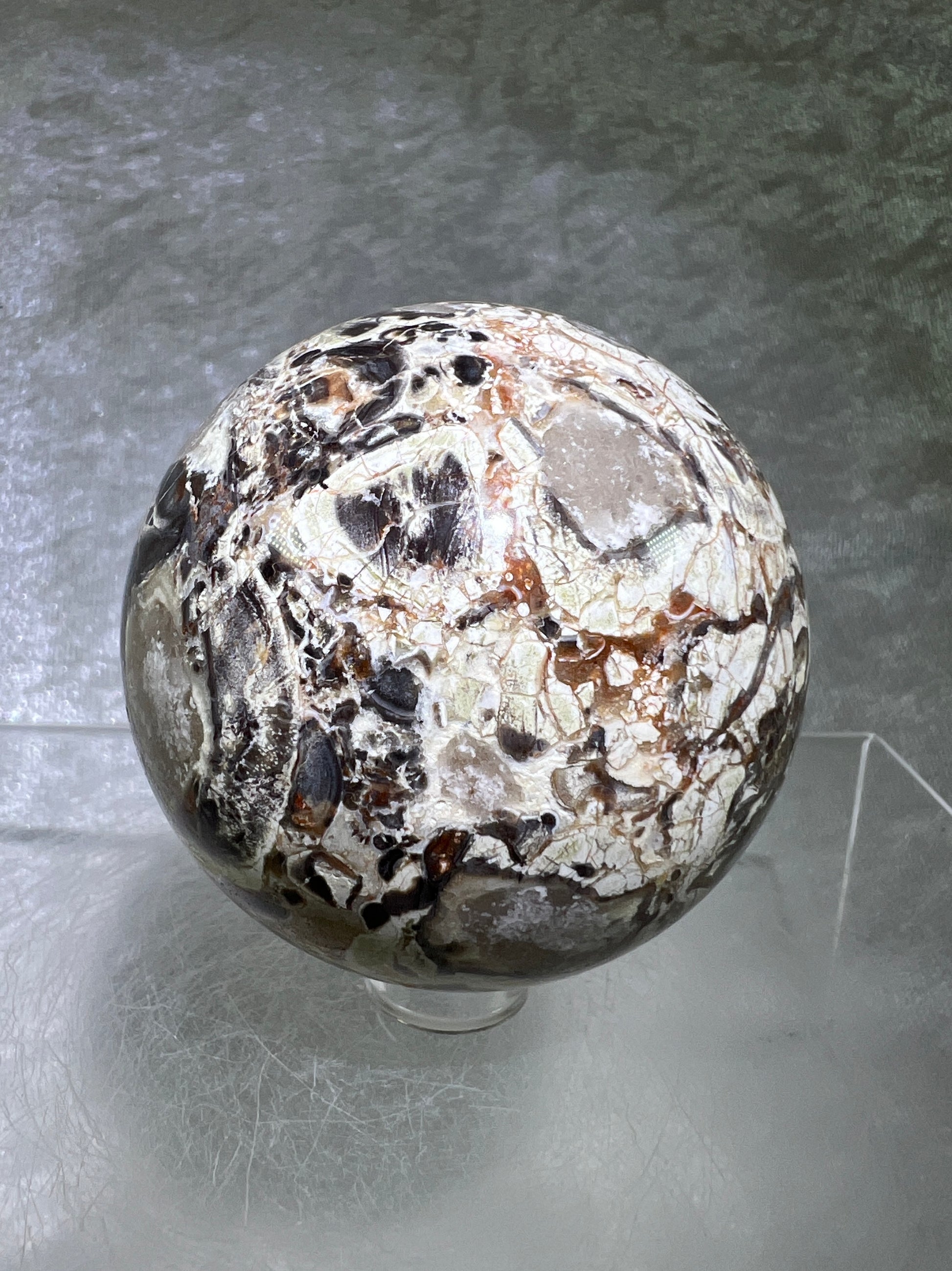 Money Agate Crystal Sphere. 60mm. Stunning Indonesian Bloodstone. Amazing Colors And Patterns
