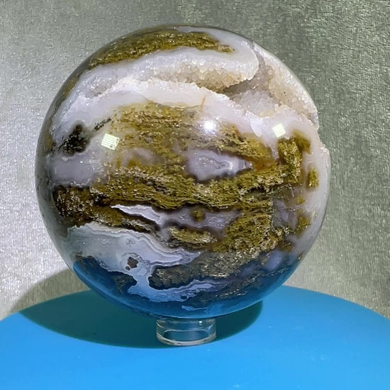 Moss Agate Sphere. 76mm. Amazing Druzy Scenic Moss Agate. Rare Colors With Gorgeous Patterns.