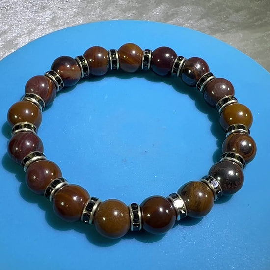 Tiger Iron Crystal Bead Bracelet. 10mm. Gorgeous Rare Crystal Bracelet With Amazing Spacers.