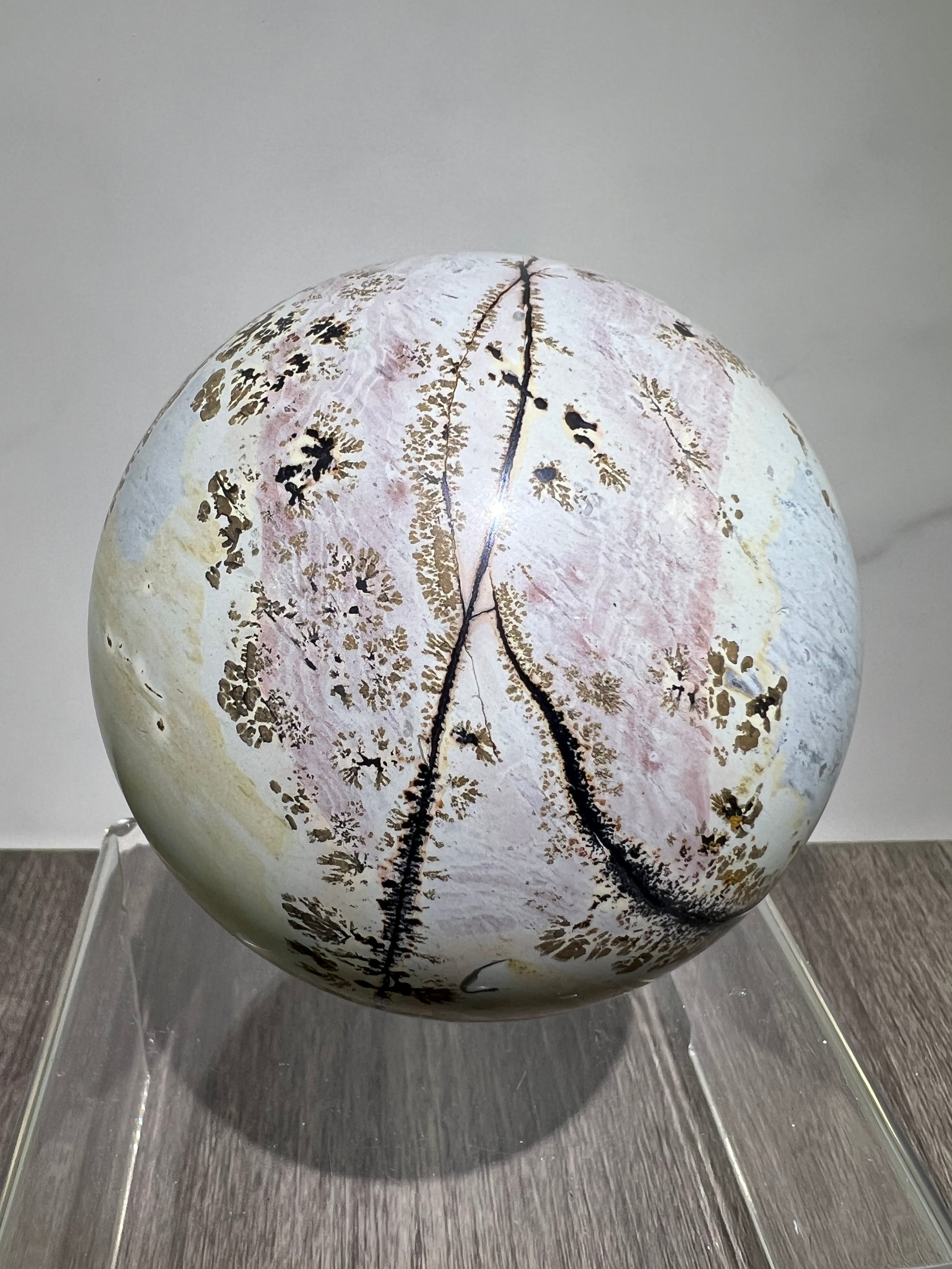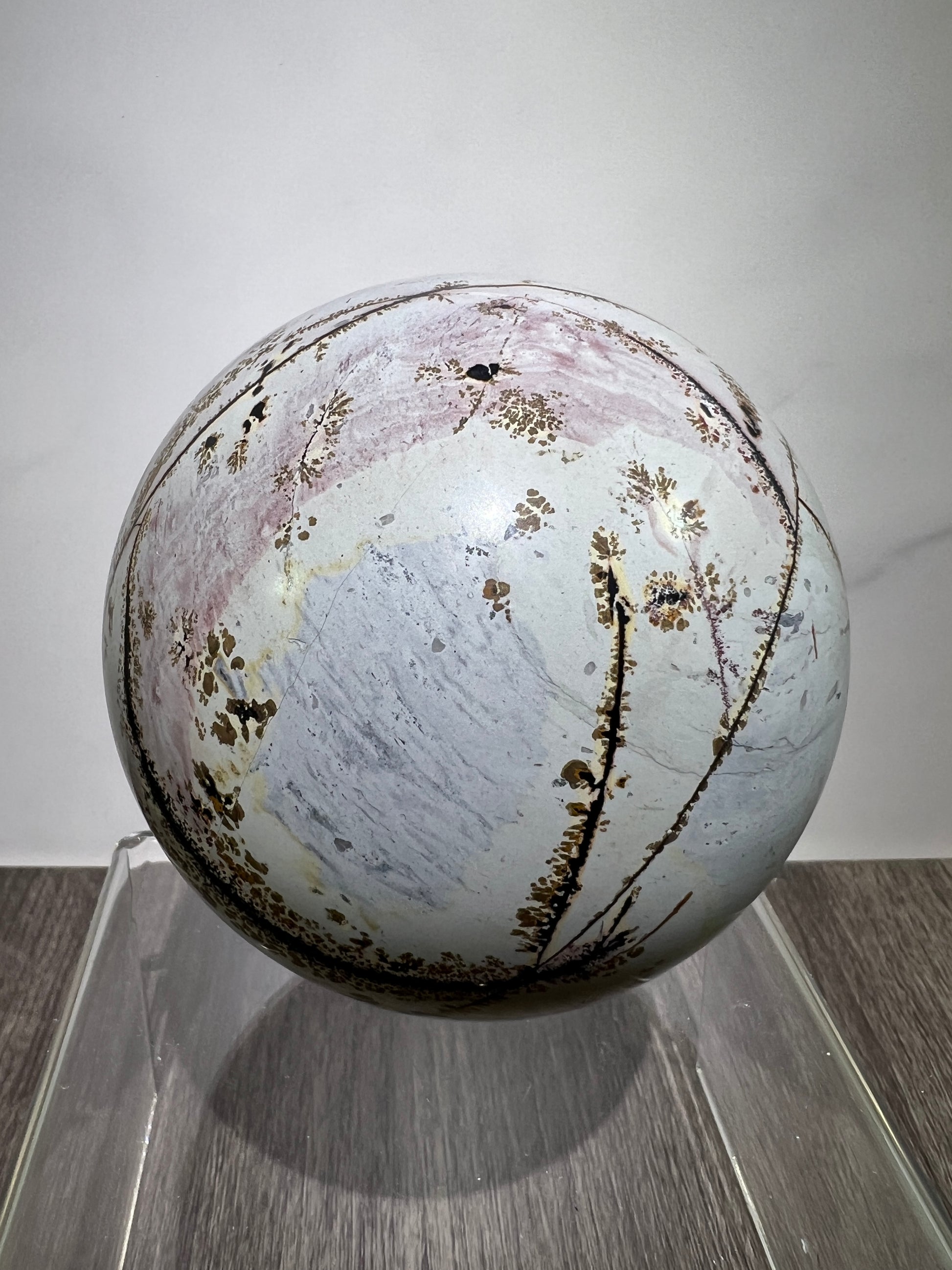 Picture Jasper Crystal Sphere. 85mm. Gorgeous Chinese Painted Stone. All Natural Stunning Display Sphere.