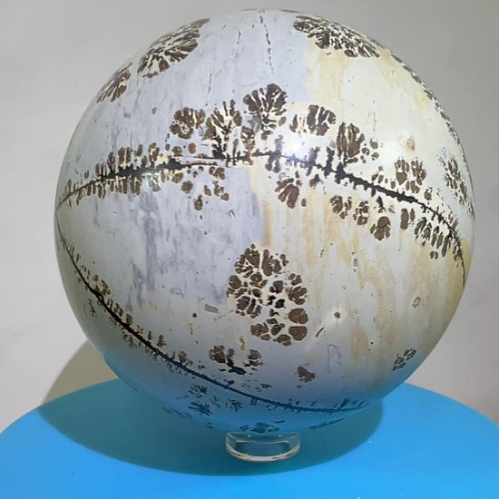 As a stunning and all natural addition to your crystal collection, this 85mm Picture Jasper Crystal Sphere showcases the unique beauty of Chinese painted stone. With its gorgeous and distinctive appearance, this sphere is a must-have for any display