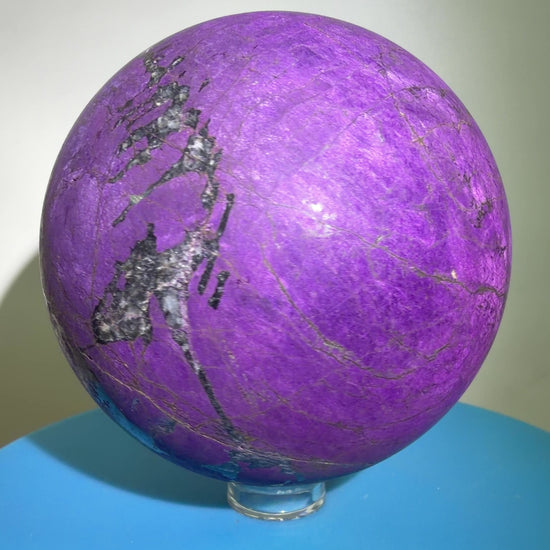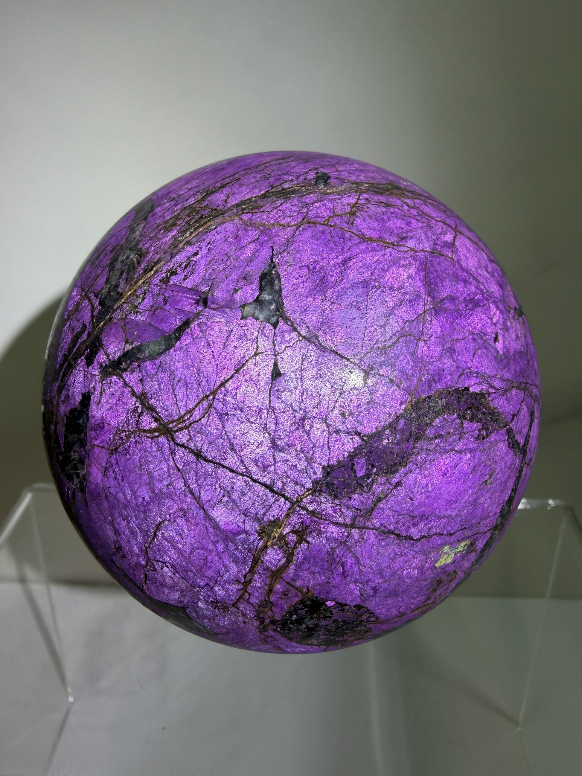 Purpurite Crystal Sphere. 71mm. Large Rare Display Crystal From Namibia. Stunning Purple Flash!