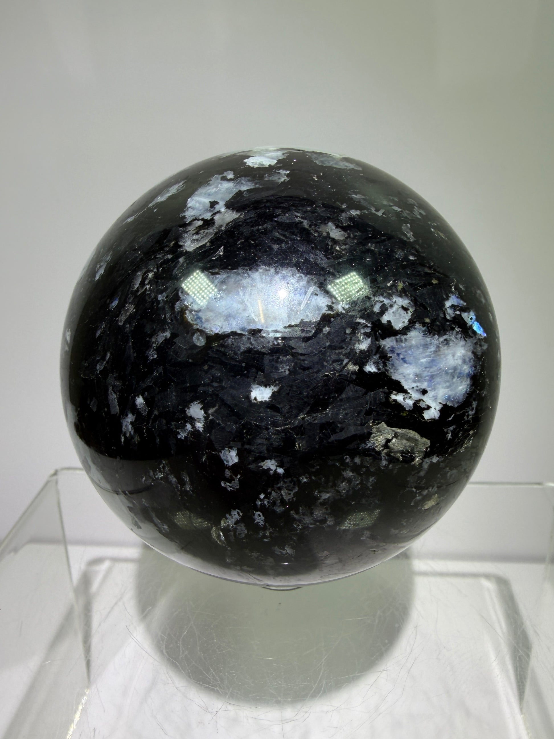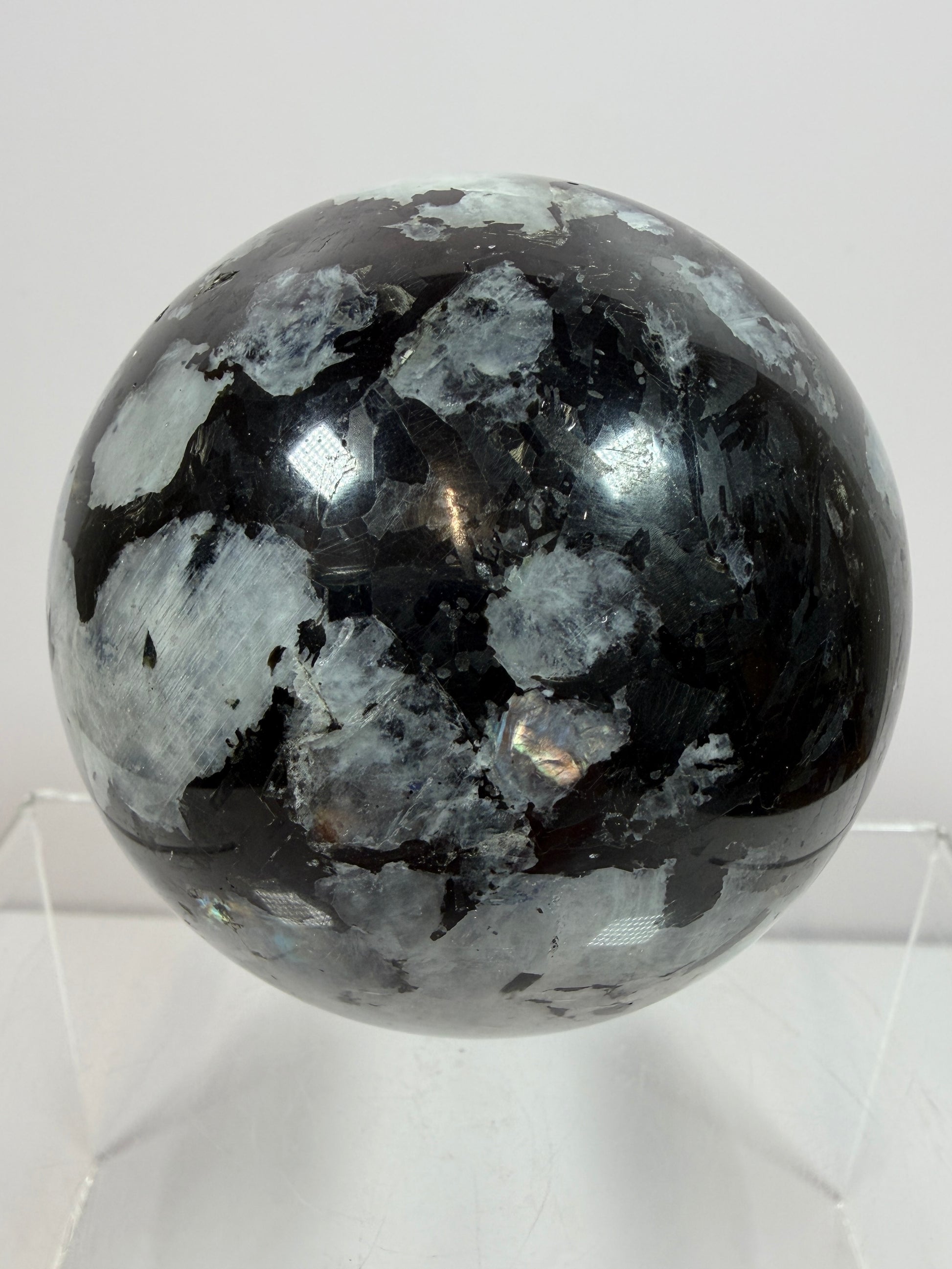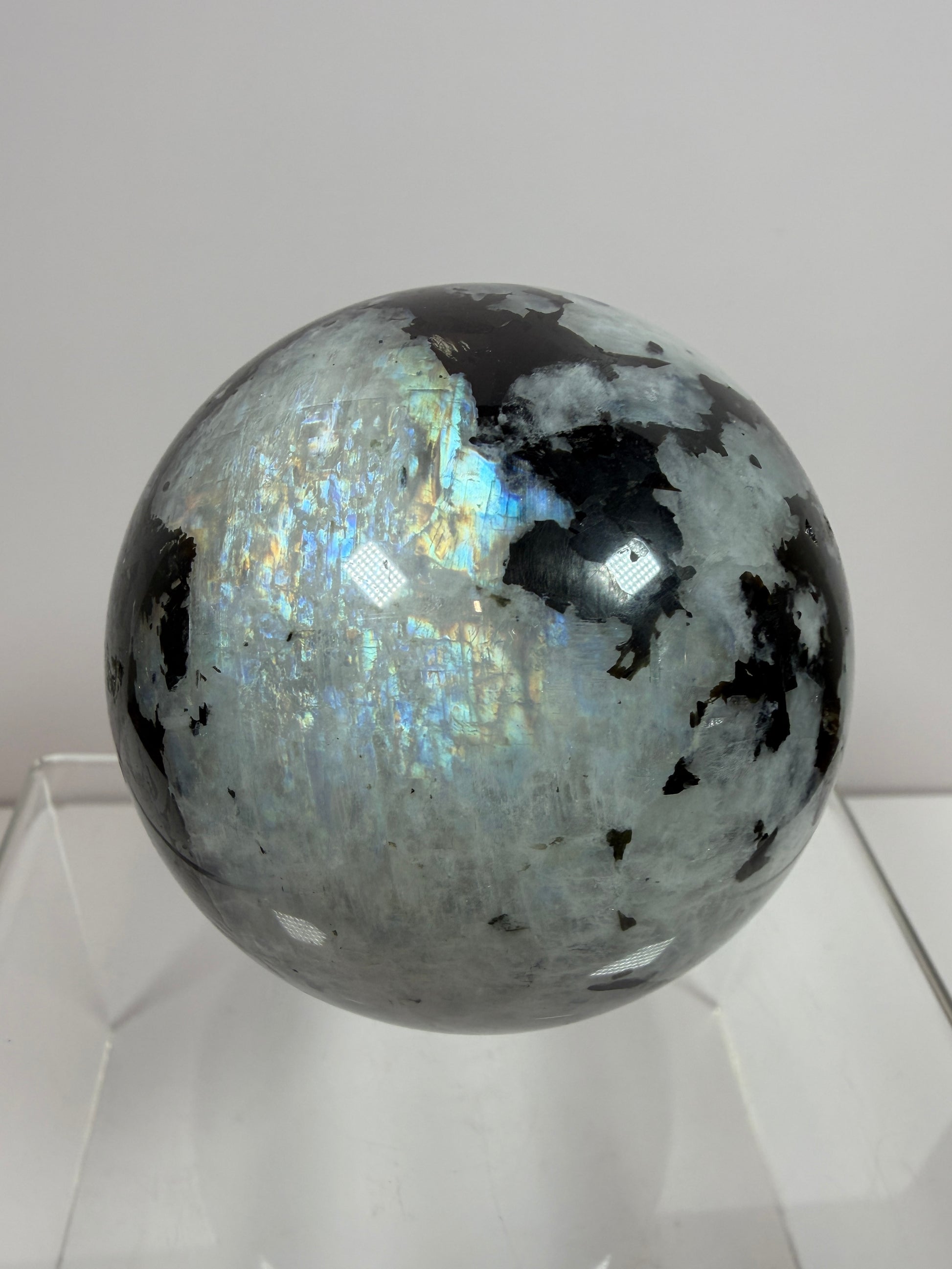 Rainbow Moonstone Sphere. 71mm. Rare Rainbow And Blue Flash! High Quality Display Sphere