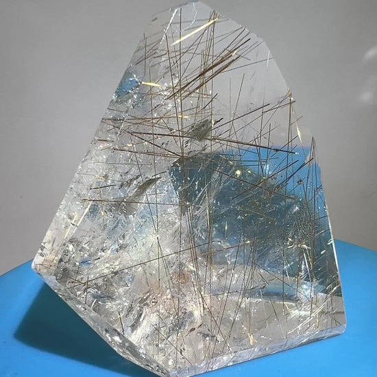 This Rutile Quartz Polished Freeform is a stunning display crystal, featuring beautiful copper and gold rutiles. Its high quality and nice clarity make it a must-have for any crystal collector. Additionally, the presence of rainbows adds to its unique beauty. Add this unique piece to your collection and experience the alluring energy of rutile quartz.
