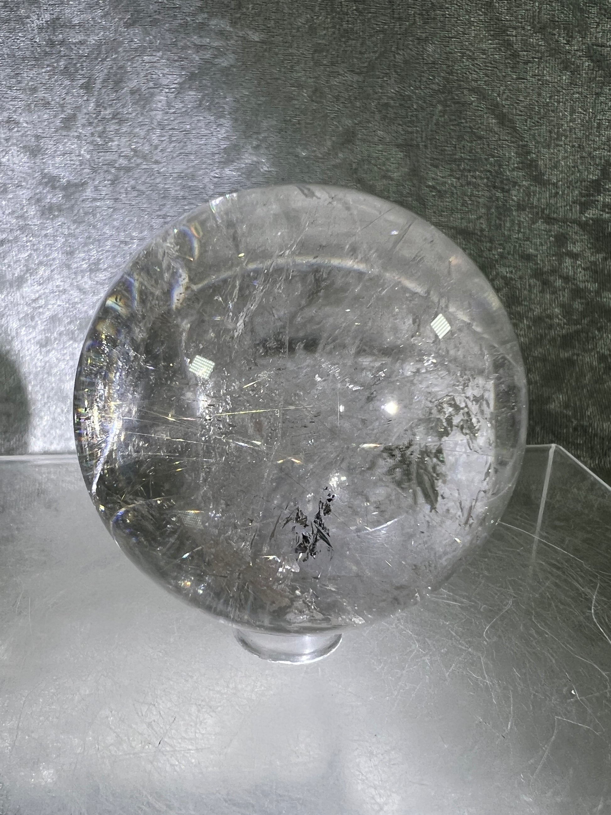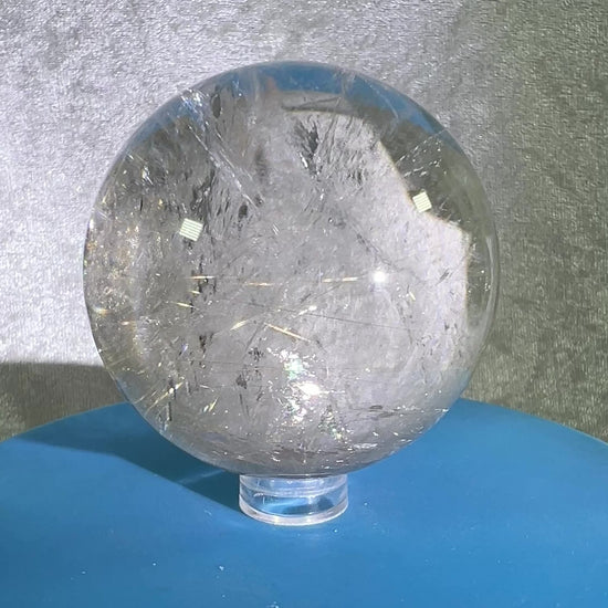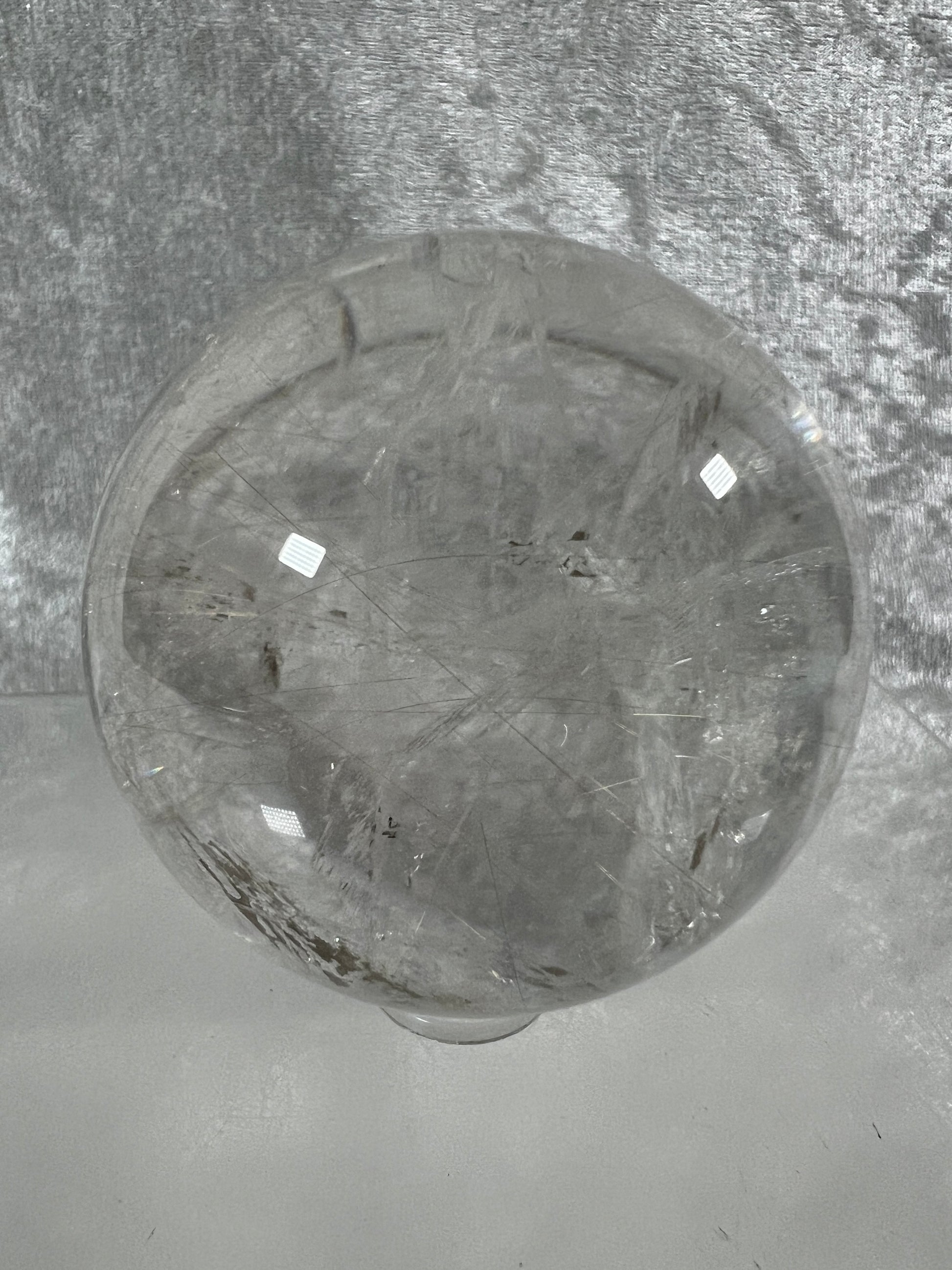 Elevate your space with our luxurious Rutile Quartz Sphere. Expertly crafted with high quality Golden Rutilated Quartz, this stunning display sphere boasts intricate gold rutile inclusions. Bring a touch of sophistication and elegance to any room with this unique and exclusive piece.