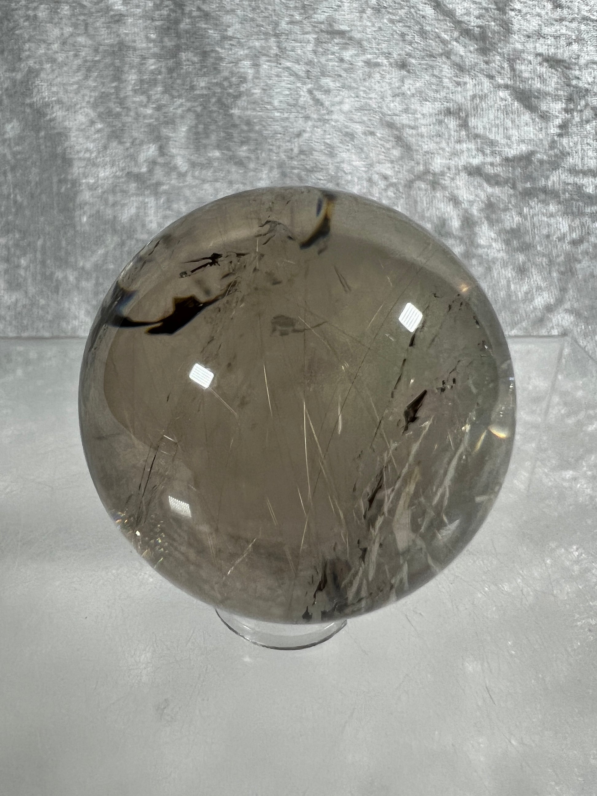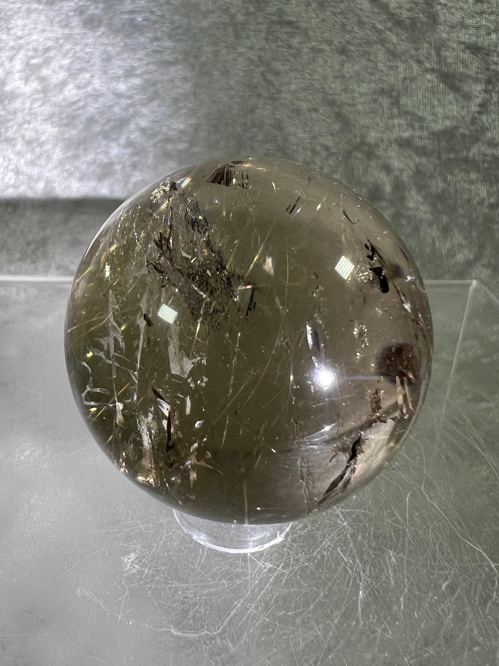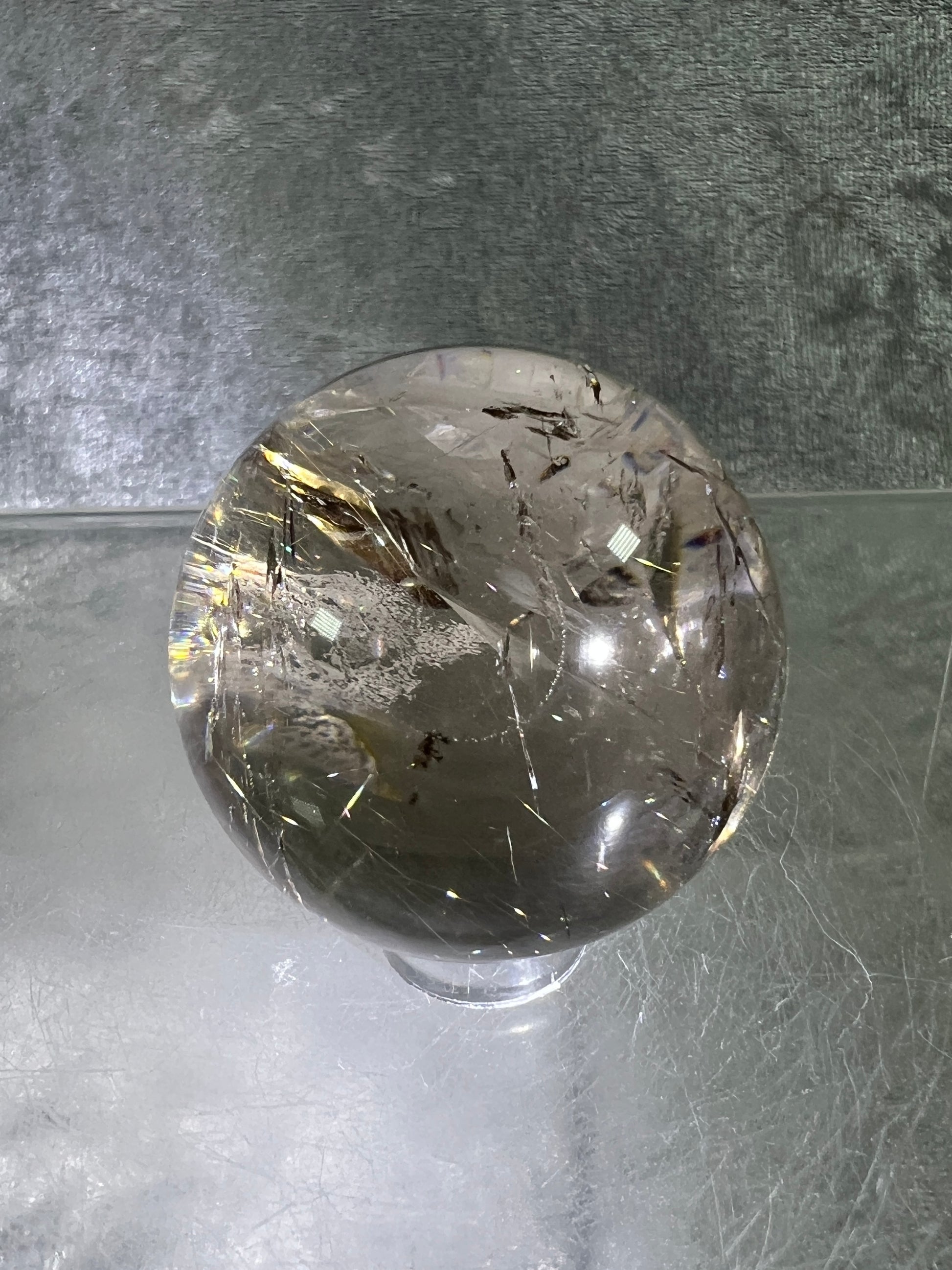 Rutile Quartz Sphere. Amazing Rainbows! Light Smoky Quartz With Stunning Golden Rutile Inclusions.