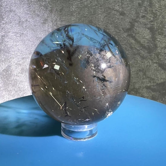 This beautiful Rutile Quartz Sphere is a true gem for any collector. It has stunning large rainbows! The alluring smoky Quartz is adorned with stunning golden rutile inclusions, creating a mesmerizing visual effect. Experience the amazing beauty and energy of this unique crystal.