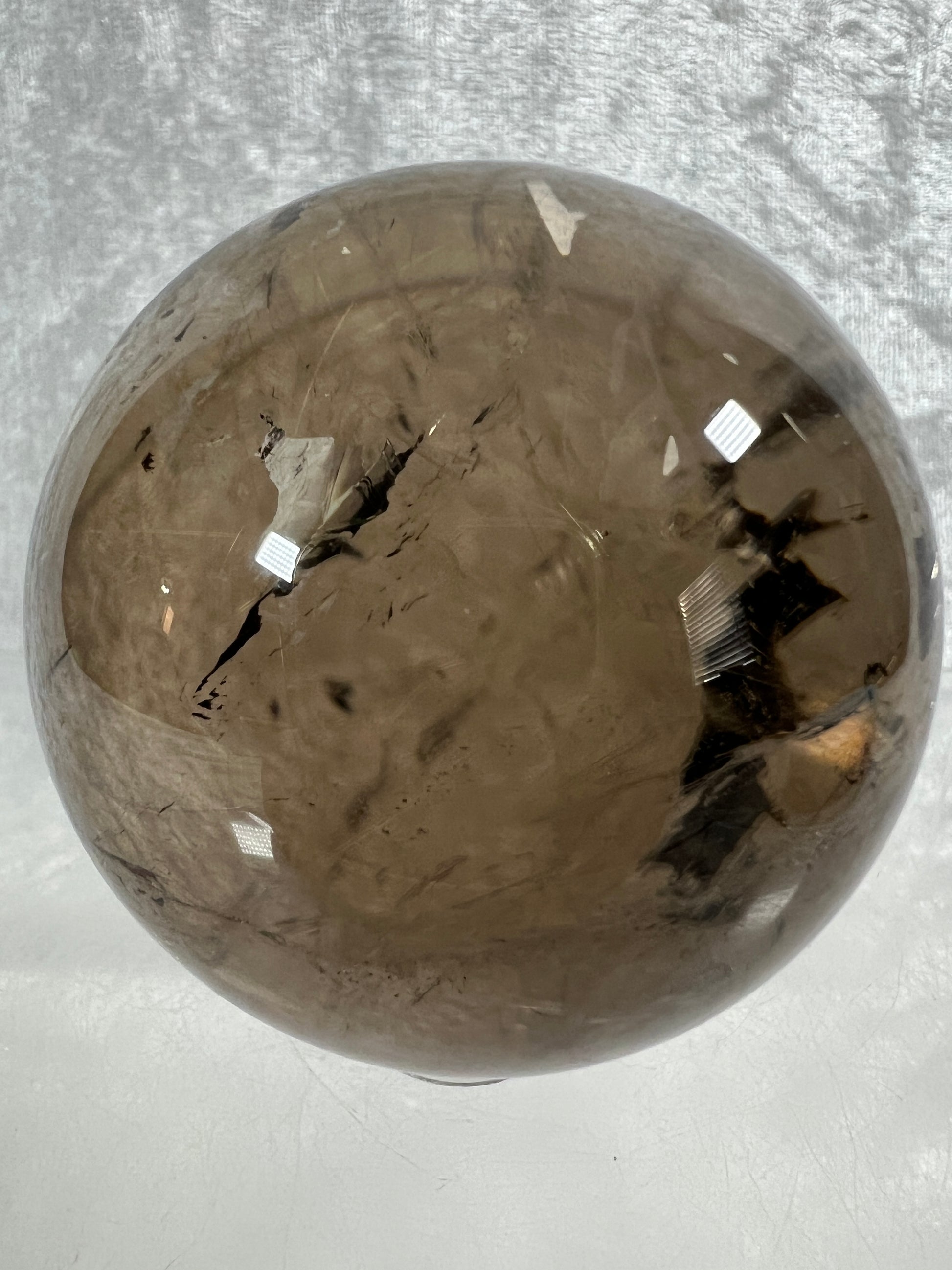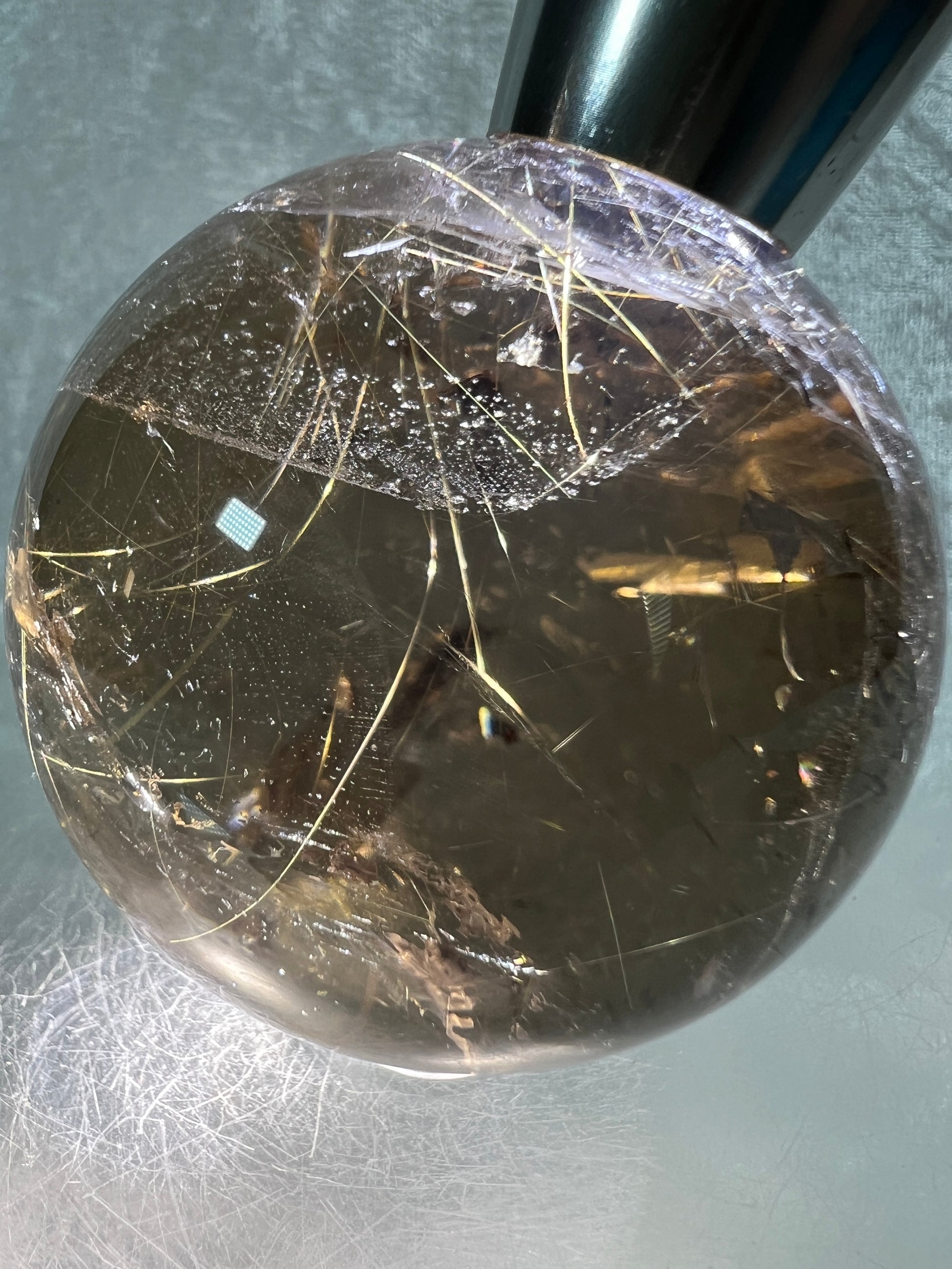 Rutile Quartz Sphere. 58mm. Gorgeous Smoky Quartz With Stunning Golden Rutile Inclusions.