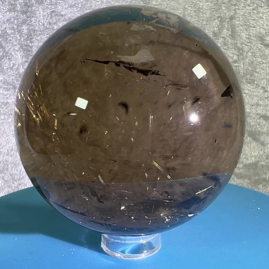 This exquisite Rutile Quartz Sphere is a true gem for any collector. The alluring smoky Quartz is adorned with stunning golden rutile inclusions, creating a mesmerizing visual effect. Experience the amazing beauty and energy of this unique crystal.