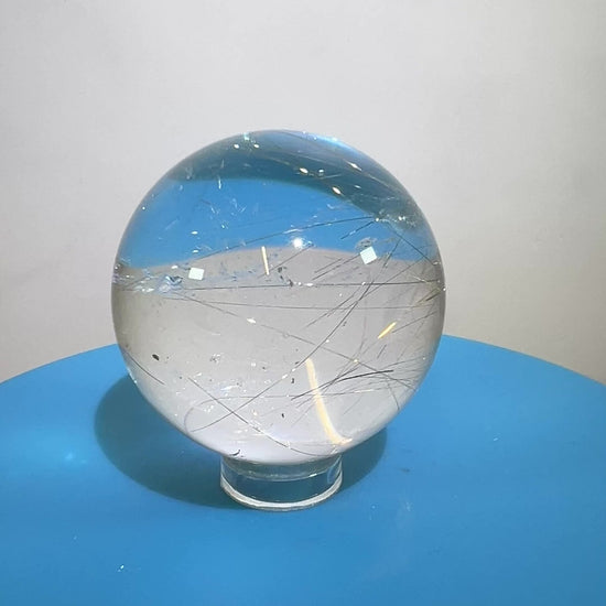 Elevate your space with our luxurious Rutile Quartz Sphere. Expertly crafted with high quality Golden Rutilated Quartz, this stunning display sphere boasts intricate gold rutile inclusions. Bring a touch of sophistication and elegance to any room with this unique and exclusive piece.