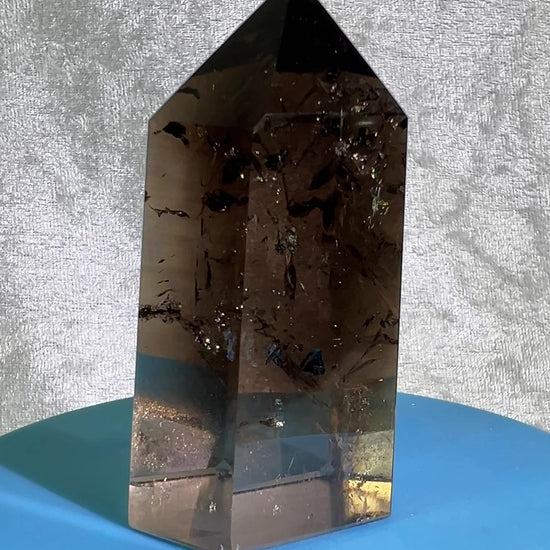 Bring the beauty of Madagascar into your space with our Smoky Quartz Tower! This high-quality tower boasts excellent clarity and nice rainbows, making it a must-have for any crystal lover. Infuse your environment with positive vibes and unique energy with this one-of-a-kind piece. Clarity and rainbows - what more could you ask for?