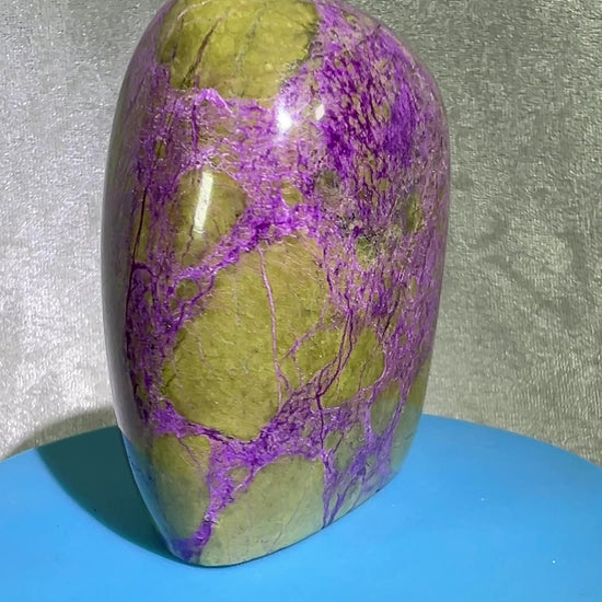 Get ready to be amazed by this stunning Stichtite In Serpentine Polished Freeform! This top-quality crystal from Bartetom, South Africa boasts a unique blend of beautiful colors and eye-catching patterns. Perfect for display, this Atlantisite Freeform will be the highlight of any collection.