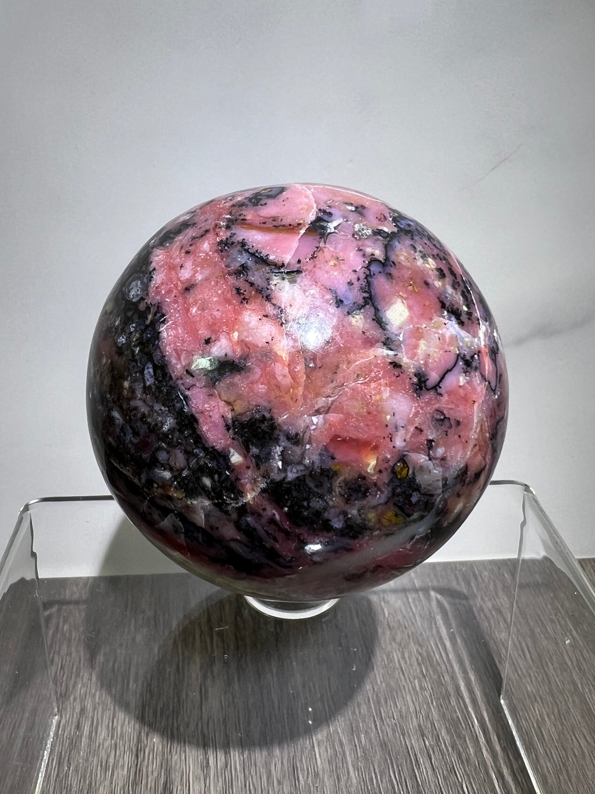 Gorgeous strawberry pink opal sphere. A recent discovery of pink opal from the Andes mountains in Peru. Stunning shades of pink. Beautiful rare addition to any collection.