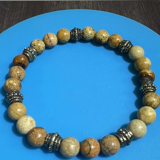 Petrified Wood Crystal Bead Bracelet. 8mm. Unique Crystal Bracelet With Cool Spacers.