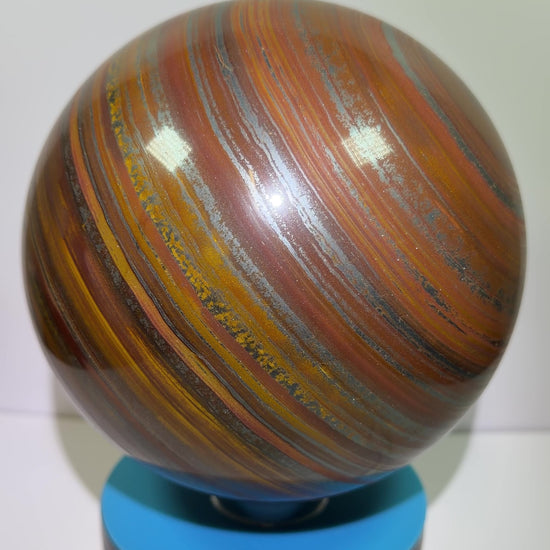 This stunning Tiger Iron Crystal Sphere, sourced from South Africa, is a massive 160mm and weighs 15 lbs. Its impressive size and high quality make it a perfect collector's piece or centerpiece for any display. Combining tigers eye, red jasper, and hematite, this unique sphere offers amazing flashes of color. Show off this unique and beautiful sphere in your home or office.