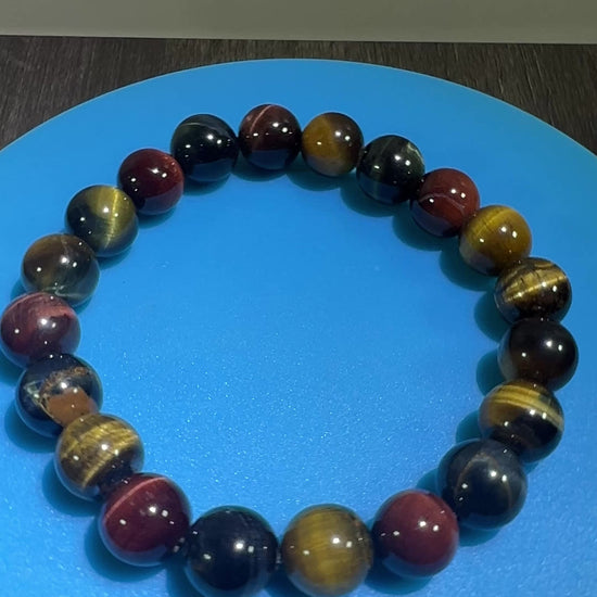 Tigers Eye Crystal Bead Bracelet. Beautiful Red, Blue, And Gold Tigers Eye Bracelet. 10mm
