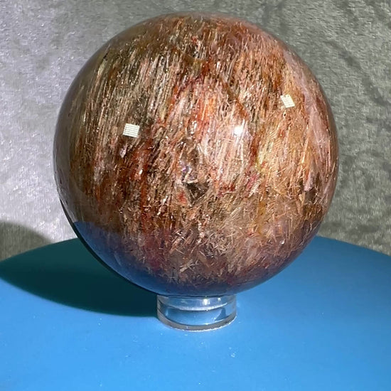 Experience the beauty and rarity of our high-quality Tourmalinated Quartz Sphere. This gorgeous display sphere showcases stunning green and red Tourmaline inclusions, making it truly one-of-a-kind. Admire the intricate patterns and natural formations of this amazing display sphere.