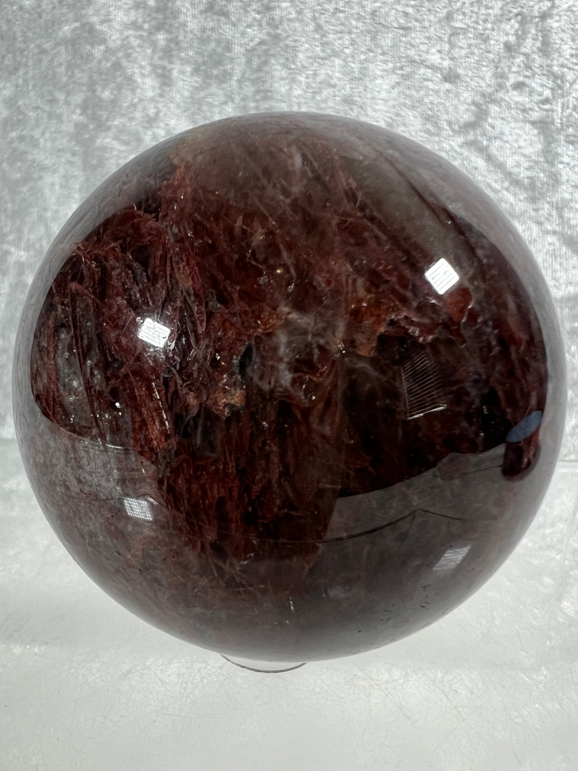 Tourmalinated Quartz Sphere. 66mm. Gorgeous Red Tourmaline Inclusions. Unique And Rare Display Sphere.