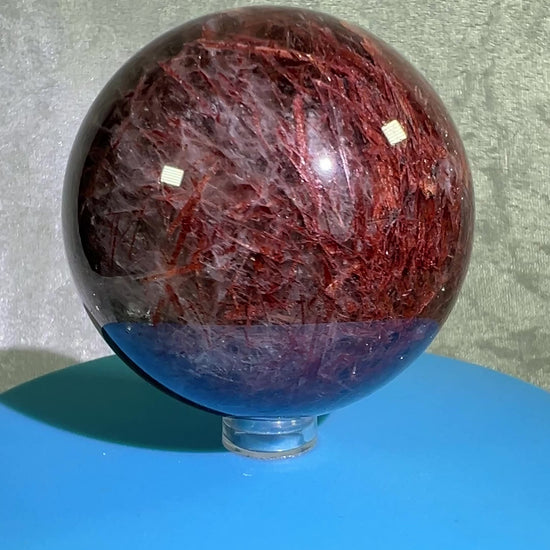 Experience the beauty and rarity of our amazing Tourmalinated Quartz Sphere. This gorgeous display sphere showcases stunning red Tourmaline inclusions, making it truly one-of-a-kind. Admire the intricate patterns and natural formations of this amazing display sphere.