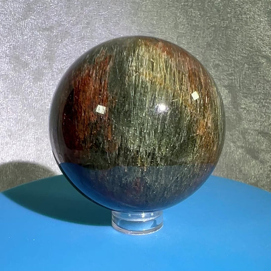 Experience the beauty and rarity of our high-quality Tourmalinated Quartz Sphere. This gorgeous display sphere showcases stunning green and red Tourmaline inclusions, making it truly one-of-a-kind. Admire the intricate patterns and natural formations of this amazing display sphere.